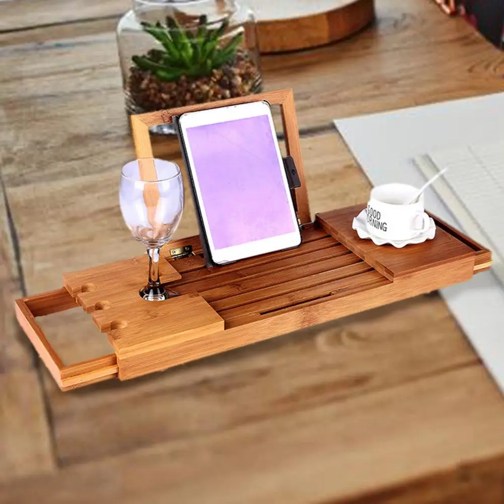 Бамбуковый деревянный поднос для ванной, регулируемый Органайзер для ванной, стойка для чтения, держатель для планшета, держатель для мобильного телефона, держатель для вина, роскошное удовольствие