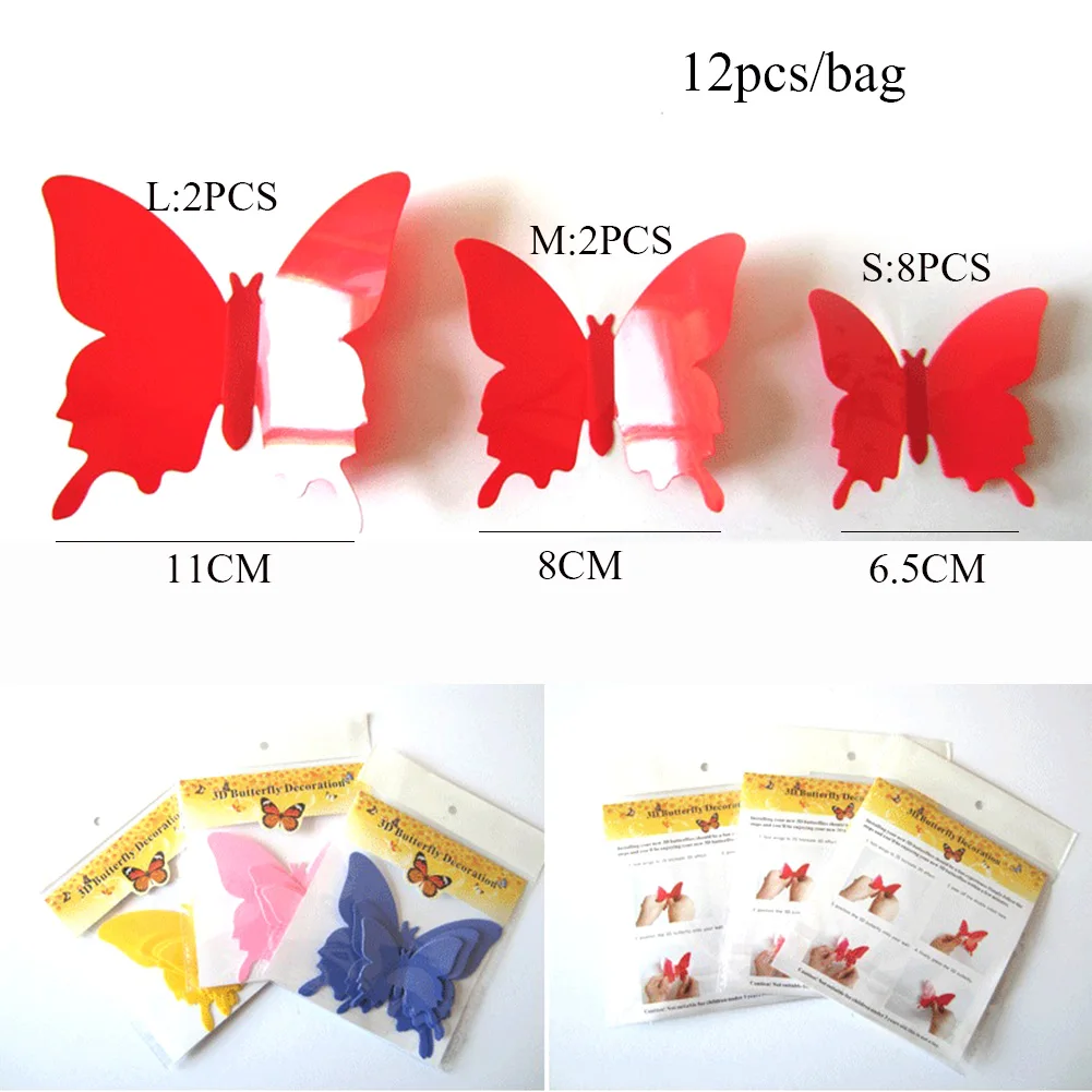 12 шт. высокое качество упаковка ПВХ 3D декоративные бабочки настенные художественные наклейки домашний декор