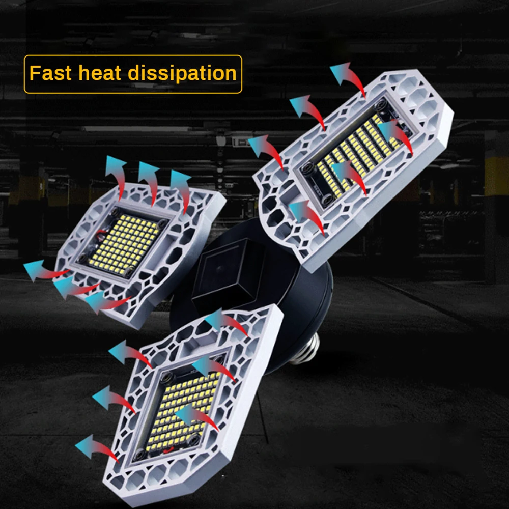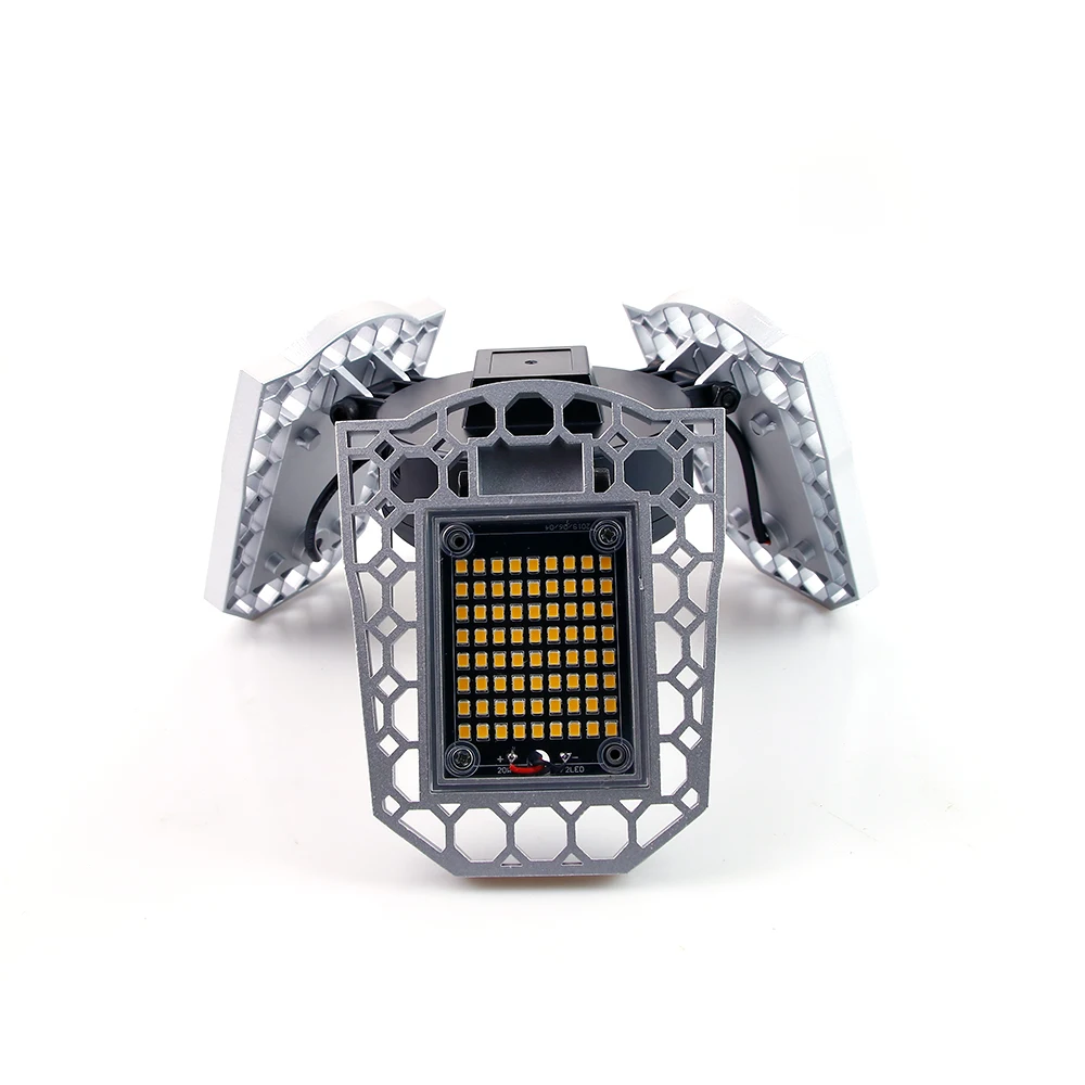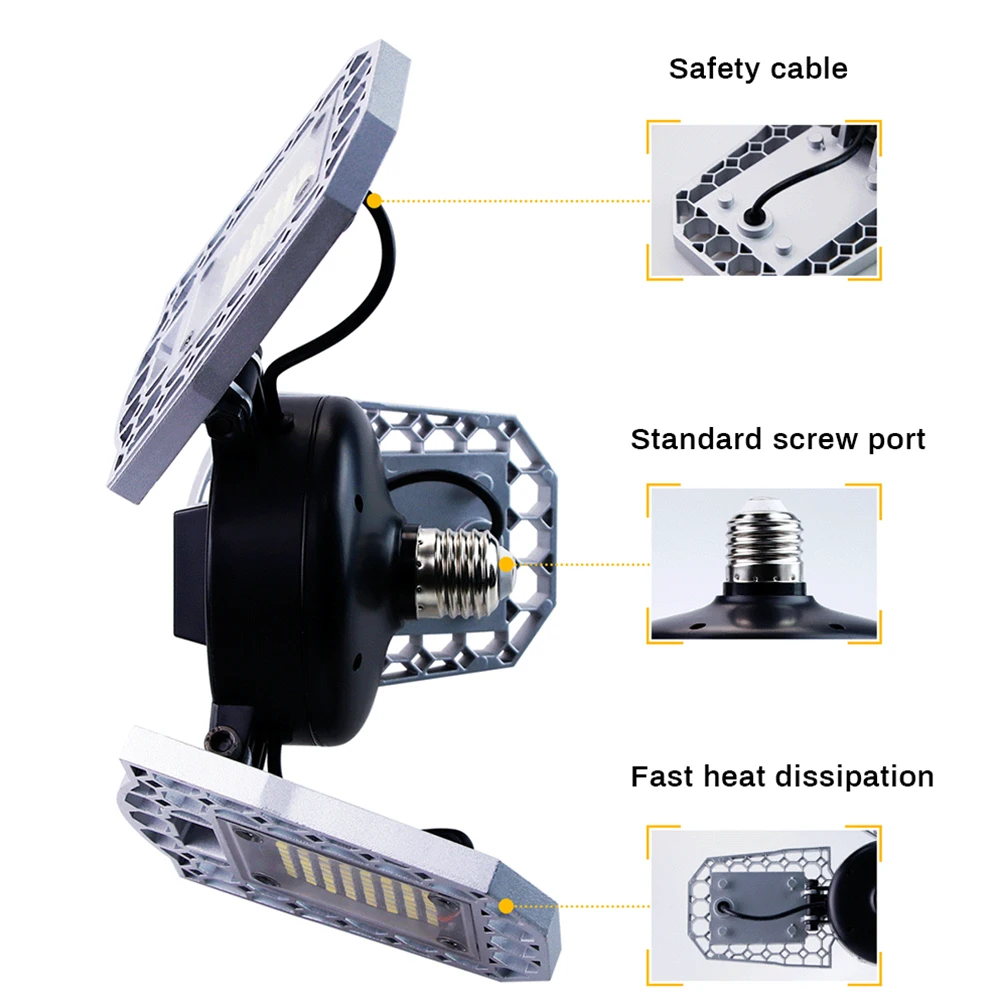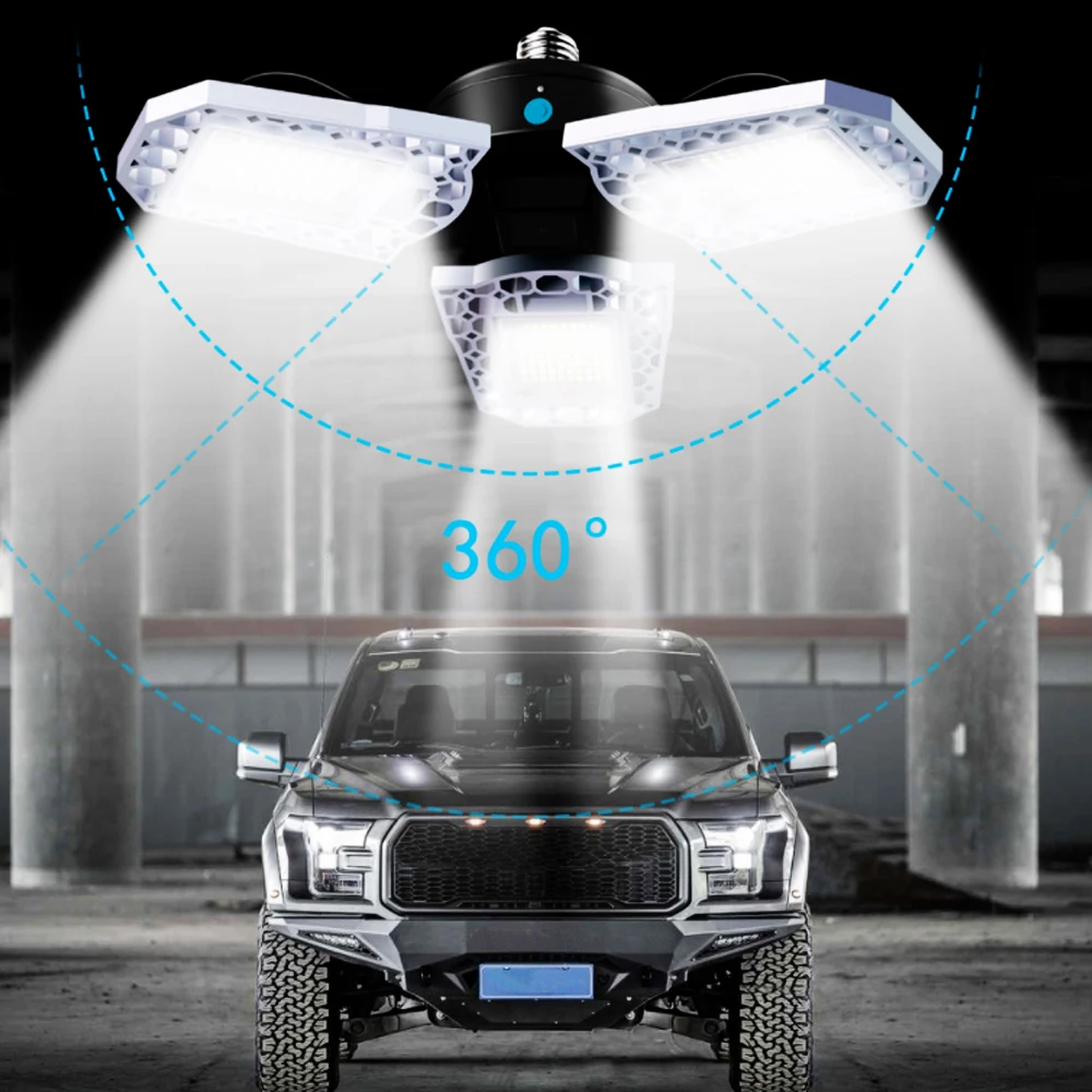 90°Adjustable Дизайн: с 3 Регулируемый алюминиевый светодиодный панели, каждый светодиодный панель гаража светильник может регулироваться от 0°to 90°according в соответствии с вашими потребностями, а также вы можете самостоятельно оформить сандалии под разными углами. Светильник может достигать 360 градусов.