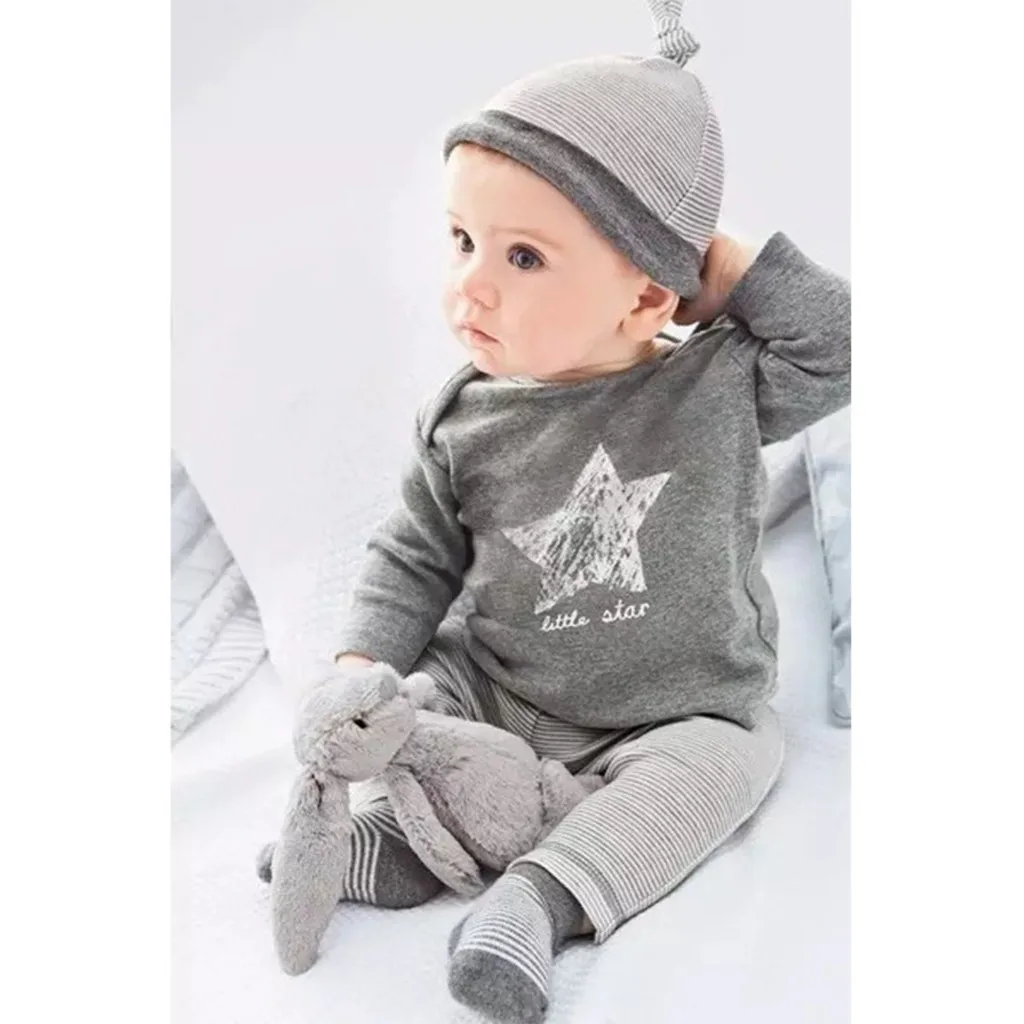 Брюки с длинными рукавами и пятиконечной звездой; шапка; Комплект из трех предметов; детская одежда; тренд