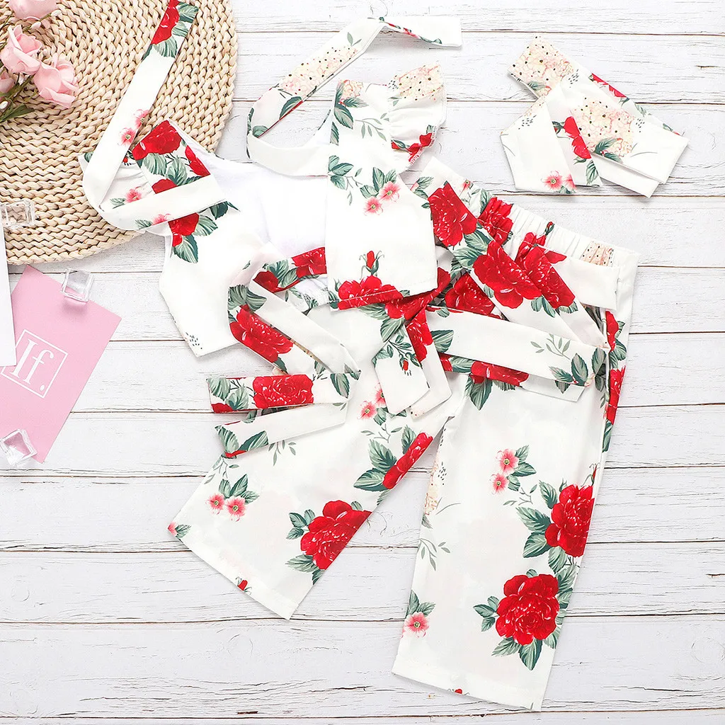 Топы с открытой спиной и принтом для маленьких девочек; Штаны с бантом; Повязка на голову