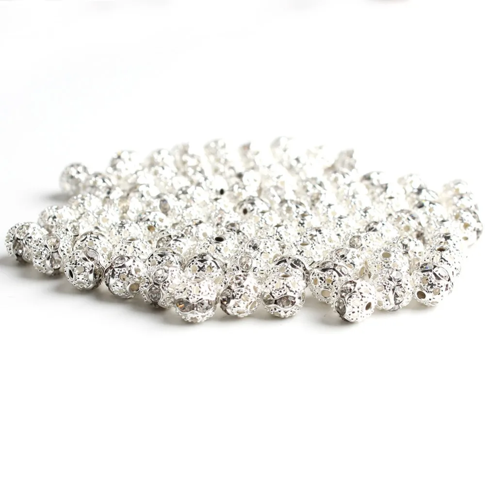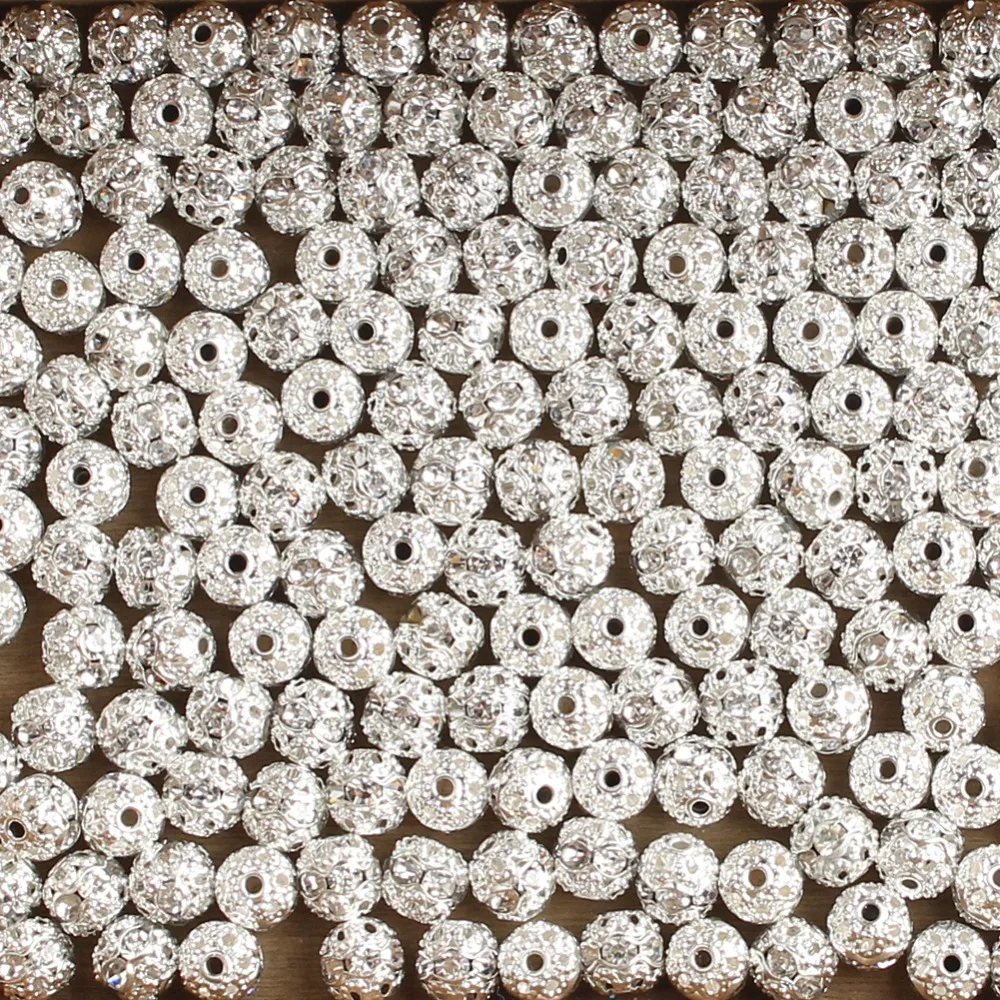 6/8mm Metal Silver Crystal Rhinestone Ball Beads Round Loose Spacer BeadFor Jewelry Making Diy Bracelet Pendant Accessories