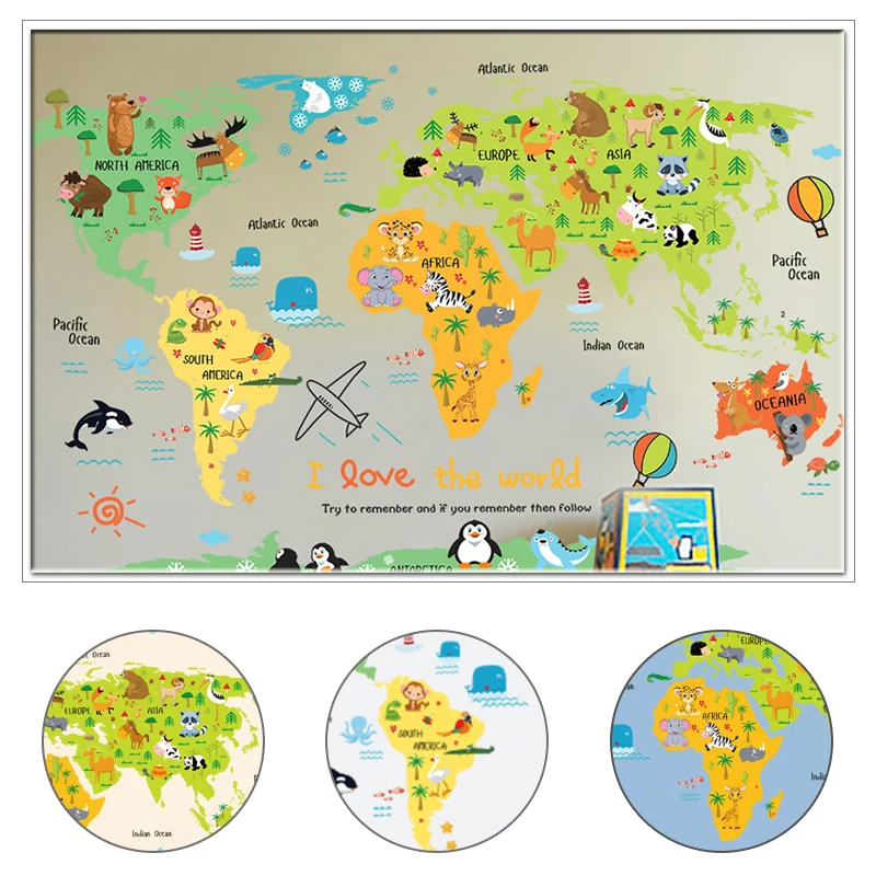 -Наклейки на карты мира играть роль в качестве отличного образовательного инструмента, он учит вашего ребенка еще больше в некоторые важные компоненты в мире, такие как, различные места, океаны, материки, и животных в естественной среде обитания. Это также Забавный способ украсить вашу комнату.