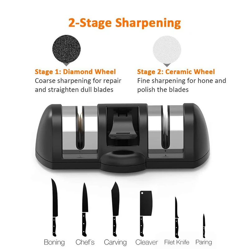 <Надежный: Эта переносная точилка для ножей создана, чтобы быть сильной в течение многих лет надежного использования и подходит как для правой, так и для левой руки.