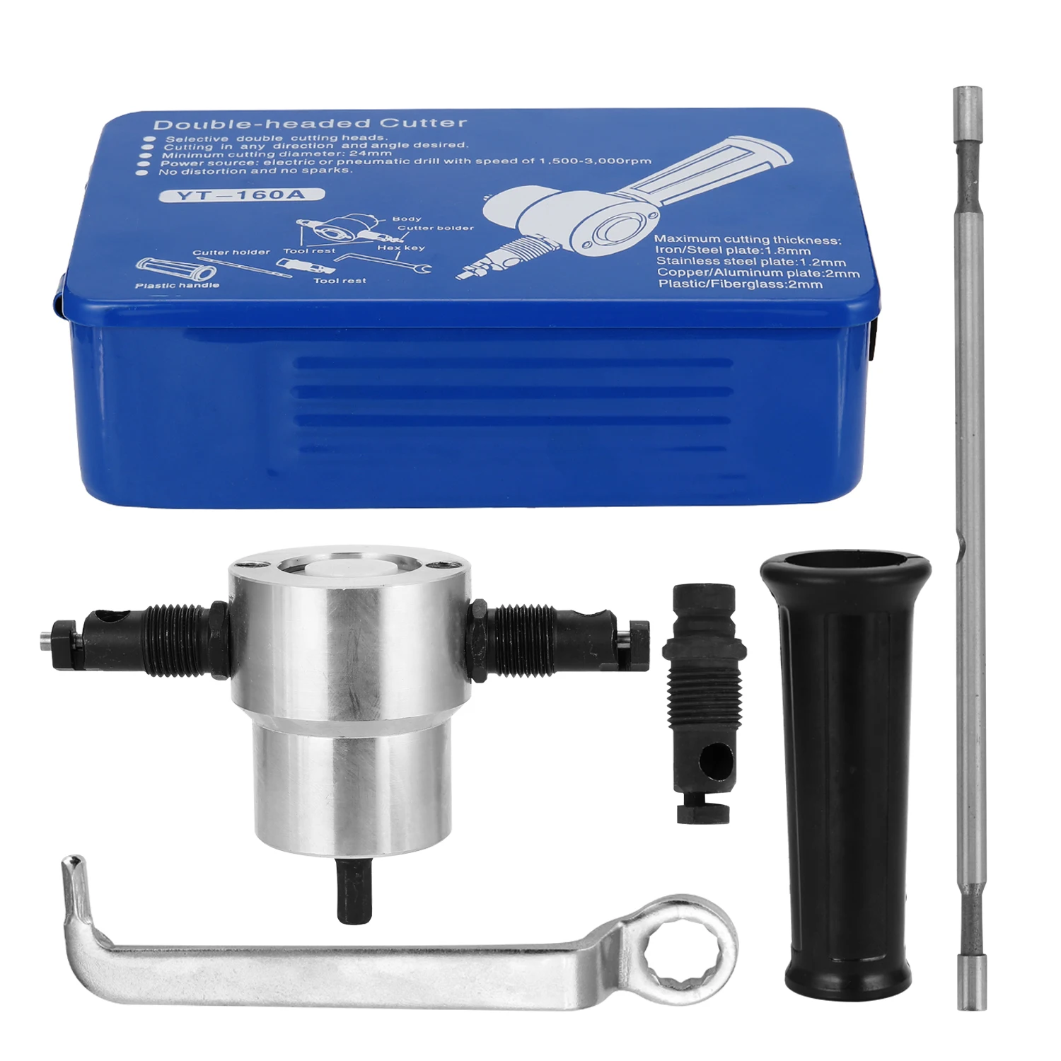 Идеальный помощник для резки! Работайте с электрической дрелью, чтобы разрезать любой тонкий металл в любую форму. Этот двуглавый металлический резак-Ниблер широко используется с электрической дрелью или пневматическим сверлом для резки тонкой доски в пределах 2 мм.