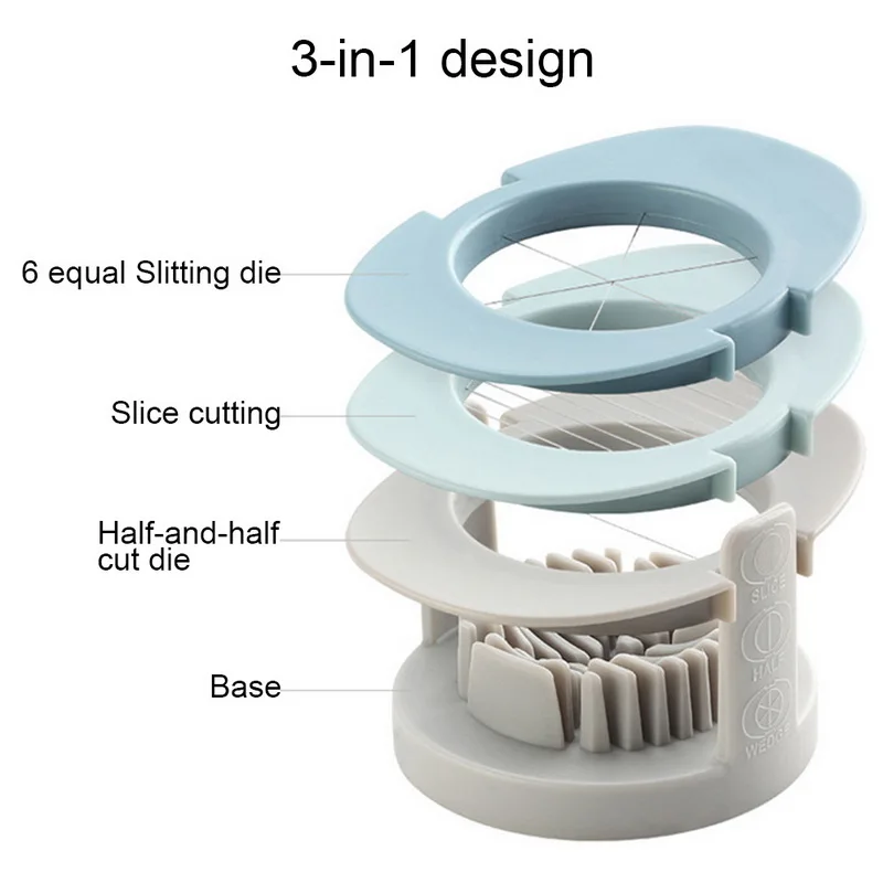 * 3-в-1 дизайн: 3 в 1 инструмент для яиц, ломтик и половина яиц.