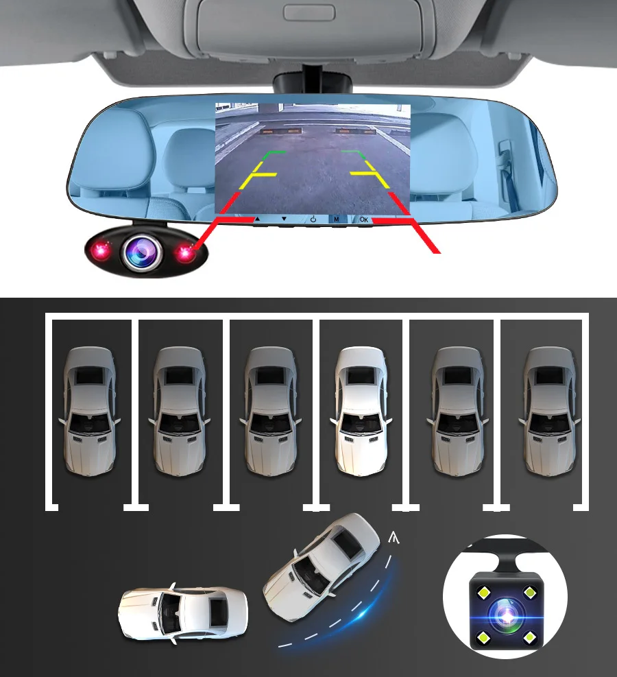 Кроме переднего и заднего вида, вы также можете наблюдать за всем, что происходит внутри автомобиля. можно выбрать другой режим просмотра экрана, до и после двойной записи, автомобиль внутри и снаружи той же записи, большой широкоугольный высокое качество изображения, более широкое видение, вождение более безопасно.
