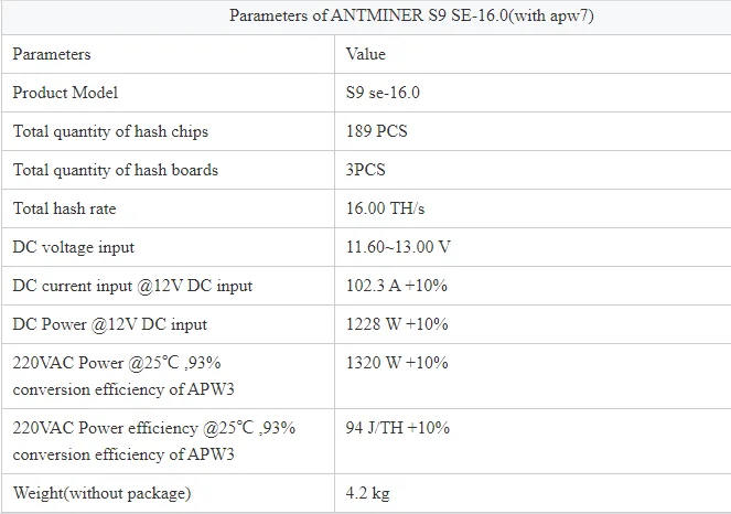 Производитель: BITMAIN Модель: S9SE(16TH или 17TH) Мощность: 1360 Вт