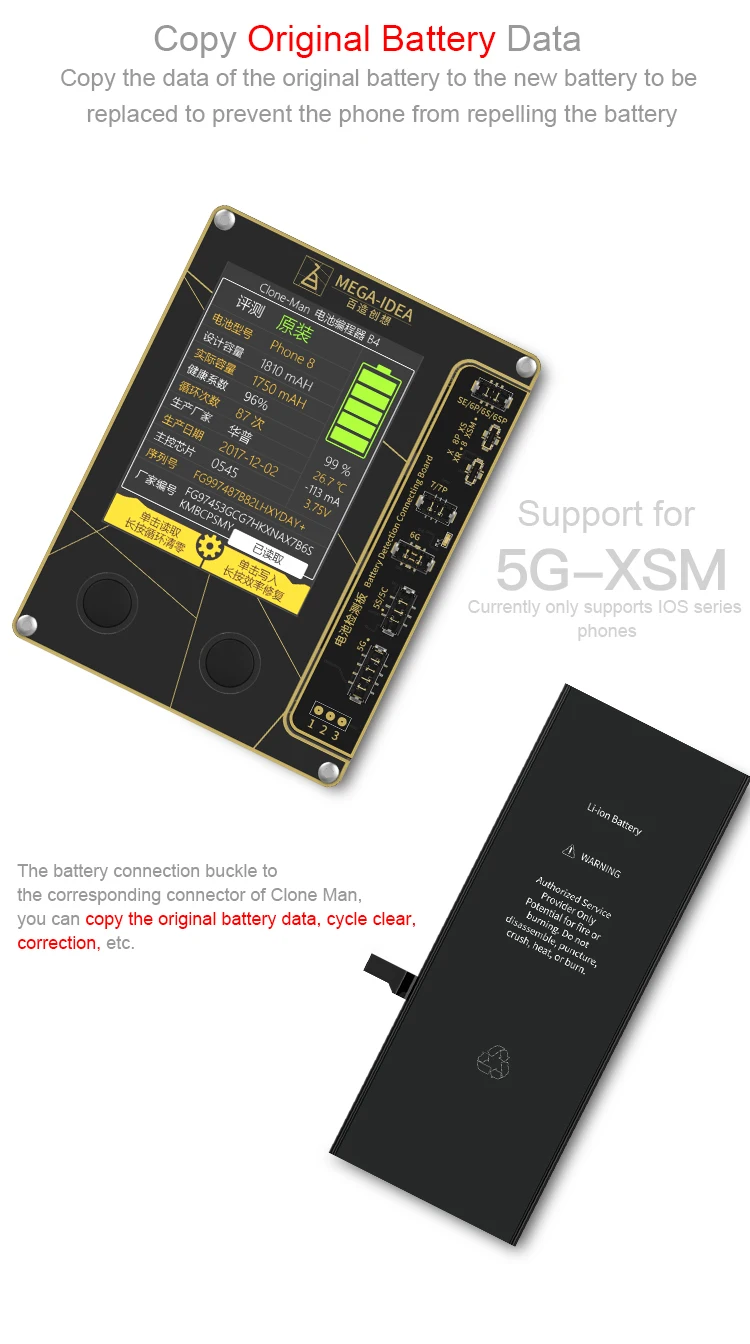 Основная функция: -Аккумулятор тестер для iPhone 4/5/5S/6/6P/SE/6S/6SP/7/7P/8/8p/X/ XS/XR/XS макс 1. Ключевой четкий цикл 2. Коррекция эффективности 3. Обнаружение Батареи 4. Восстановление данных о батарее Посылка: 1 * тестер батареи Плата для тестирования батареи для iPhone, 1 шт.