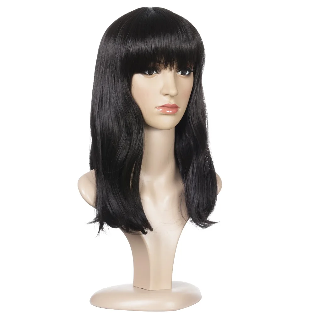 Натуральный прямой с челкой 17 "синтетический парик для белых/черных женщин афроамериканский натуральный черный натуральный поддельные волосы
