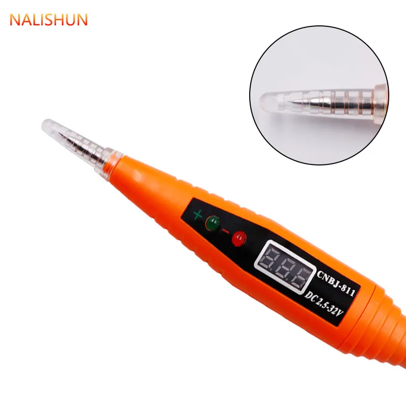 . Особенности: Сенсорный экран Цифровой экран может четко отображать напряжение. Напряжение тестовая ручка подходит для 2,5-32v напряжения. Медь зажим Медные заколки используются для непрерывного осмотра одного места. Поместите зажим в это положение, затем вы сможете освободить руки. Стилус Защитная крышка Тестовая ручка Защитный колпачок для иглы входит в посылка, чтобы защитить иглу и предотвратить ее изгиб из-за падения. Пружинная проволока Телескопическая пружинная проволока удобен для пользователей, для того чтобы хранить испытания ручек, и может достигать до 2,4 м в тех случаях, когда нужно. Крокодилья пасть зажим Тестовая ручка может быть подключена к зажиму для рта крокодила на игле, которая проста в использовании. Спецификация: Тип: ручка для проверки напряжения Количество: 1 Материал: металл + пластик + электрические компоненты Цвет: как показано на рисунке Длина пружинной проволоки: 47-240 см/18,47-94,32 дюйма Длина зажима: 78 мм/3,07' Длина ручки: 175 мм/6,88'' Длина зажима для рта крокодила: 48 мм/1,89 дюйма Вес нетто: 140 г/4,94 унций Посылка: 1 * ручка для проверки напряжения 1 * зажим для рта крокодила 1 * Предохранитель иглы