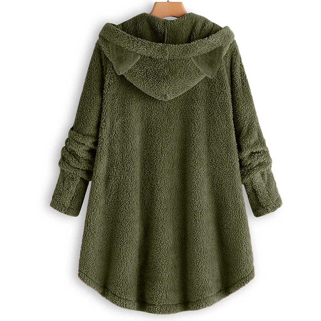 Женское пальто на пуговицах, однотонный пуловер с капюшоном, свободный свитер, блузка размера плюс
