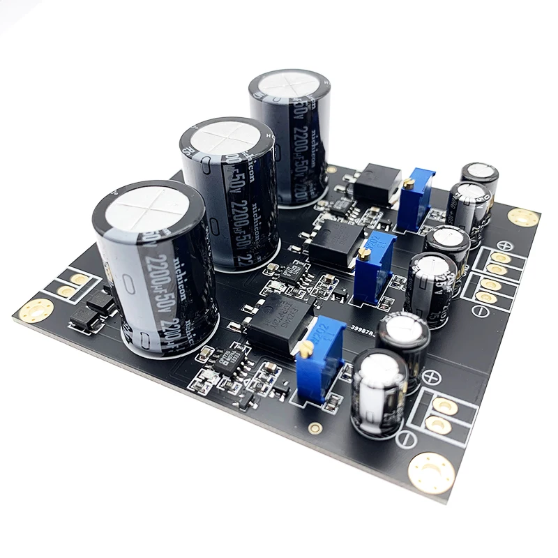 1. PD-01 использует архитектуру операционного усилителя и полевой трубки. Операционный усилитель использует новый оригинальный операционный усилитель Ti NE5534. В полевой трубке используется новый оригинальный Infineon IRF9Z34NS. Выходное напряжение имеет стабильную пульсацию и низкую скорость отклика. Он очень подходит для платы ЦАП. Источника питания. Плата разработана с учетом того, что пользователю необходимо 3 комплекта независимых блоков питания, поэтому PD-01 может быть выведено как 3 комплекта независимых напряжений. 2. Выходное напряжение: Положительное и отрицательное 12 В, + 5 В 3. Выходной ток: Макс. 2а