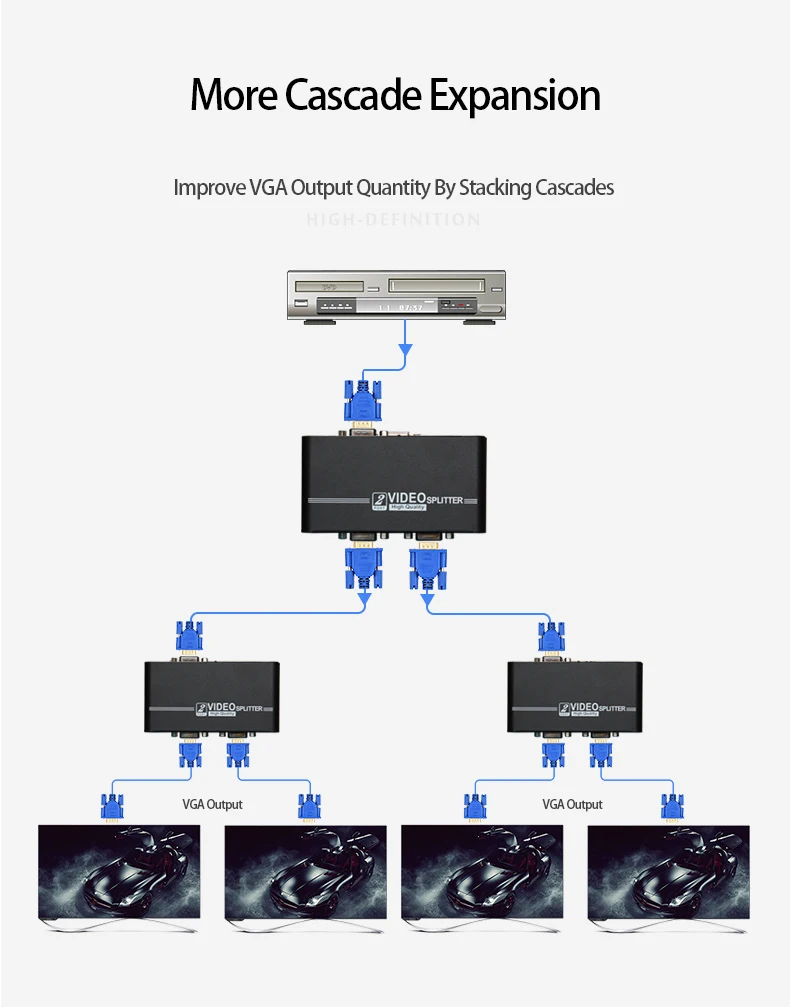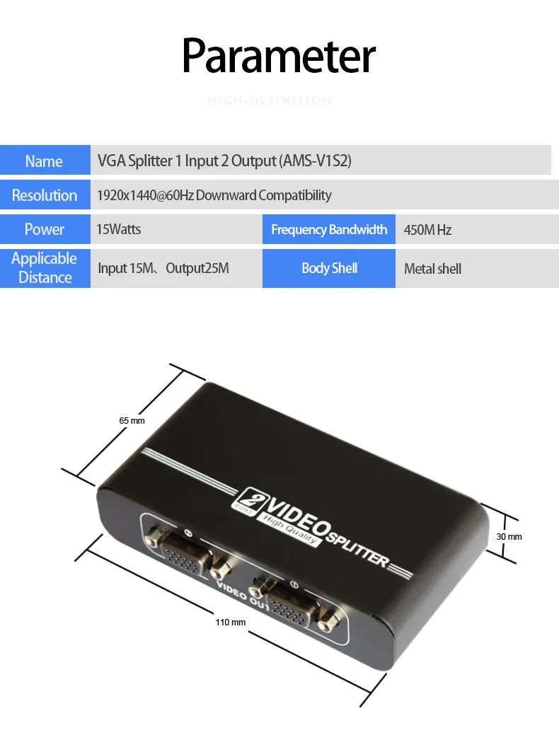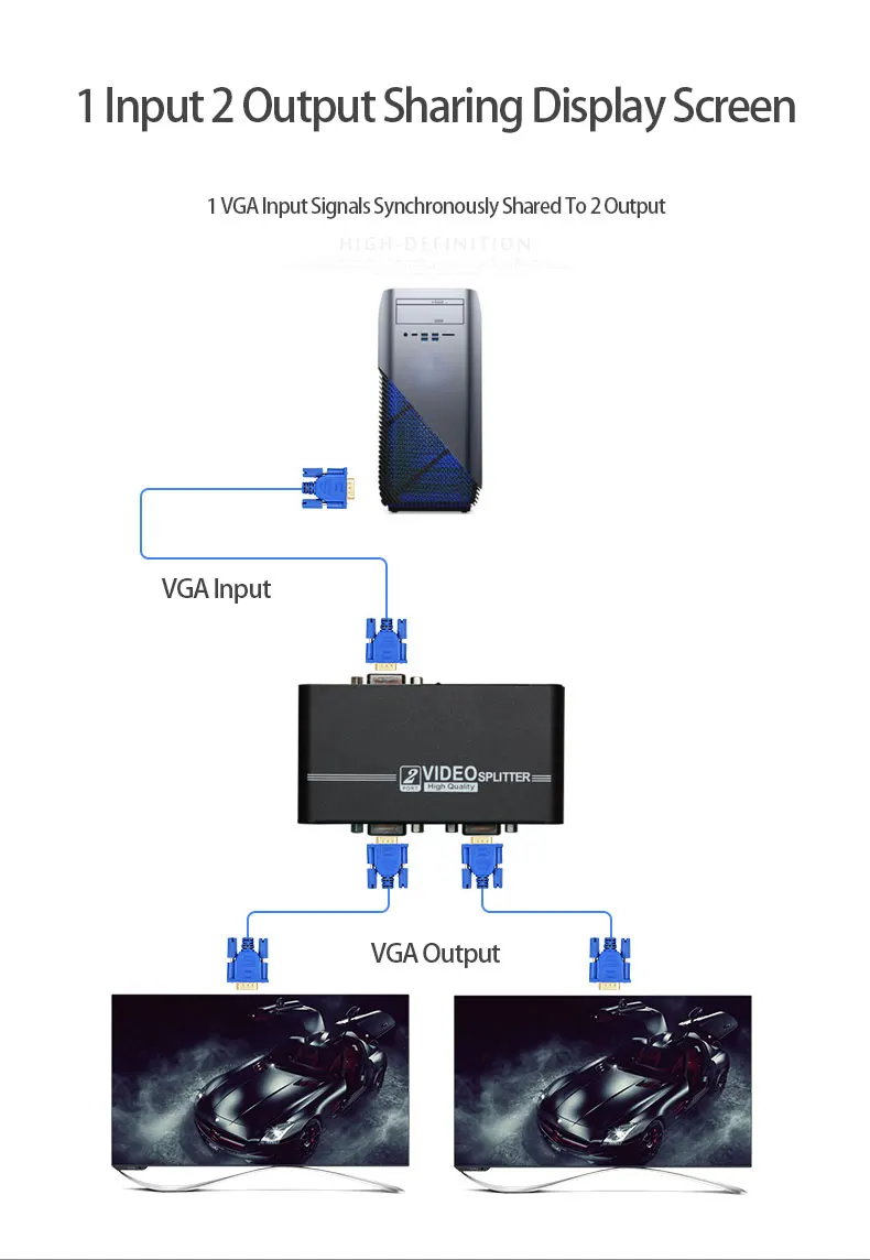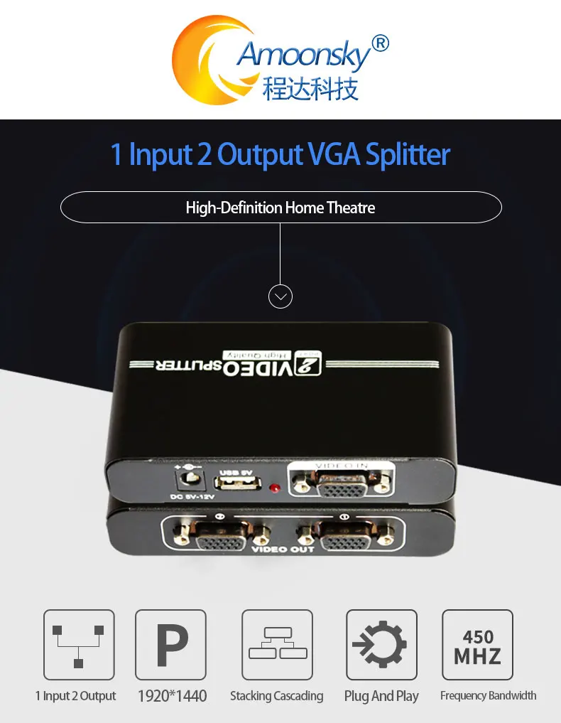 VGA сплиттер Amoonsky AMS-V1S2 1 VGA вход и 2 VGA выход VGA монитор коммутатор для ПК ноутбука