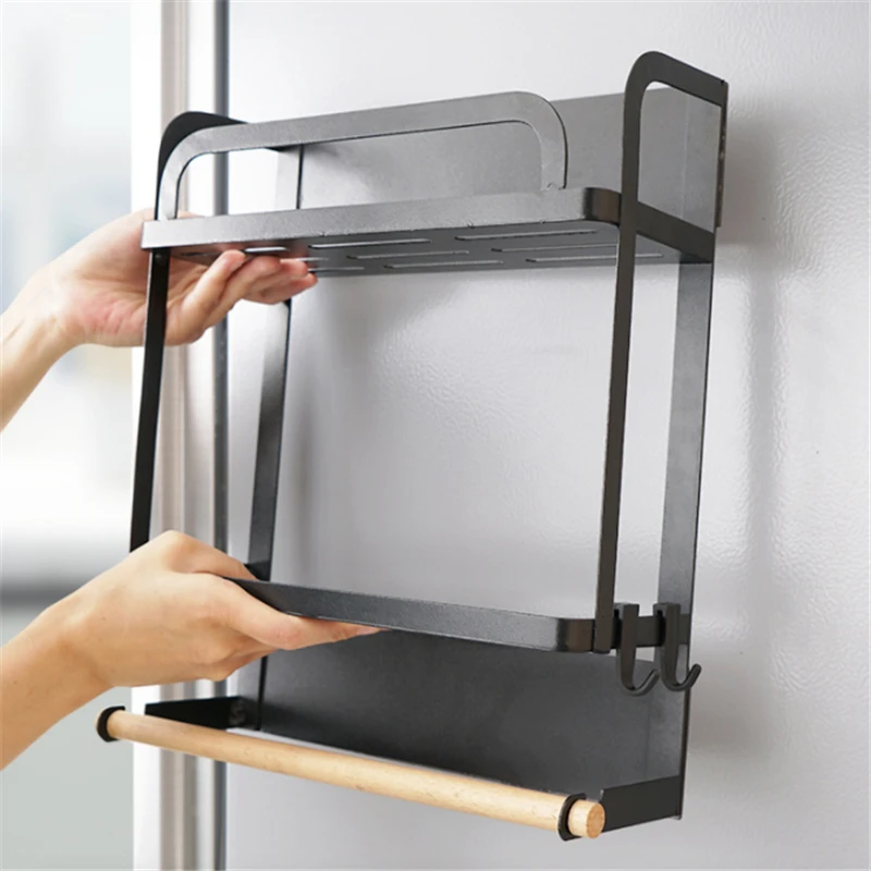 Магнитная Адсорбция холодильник боковая стойка Черный многослойный дырокол-Бесплатный кухонный держатель для хранения бумажных полотенец Полка Органайзер JE
