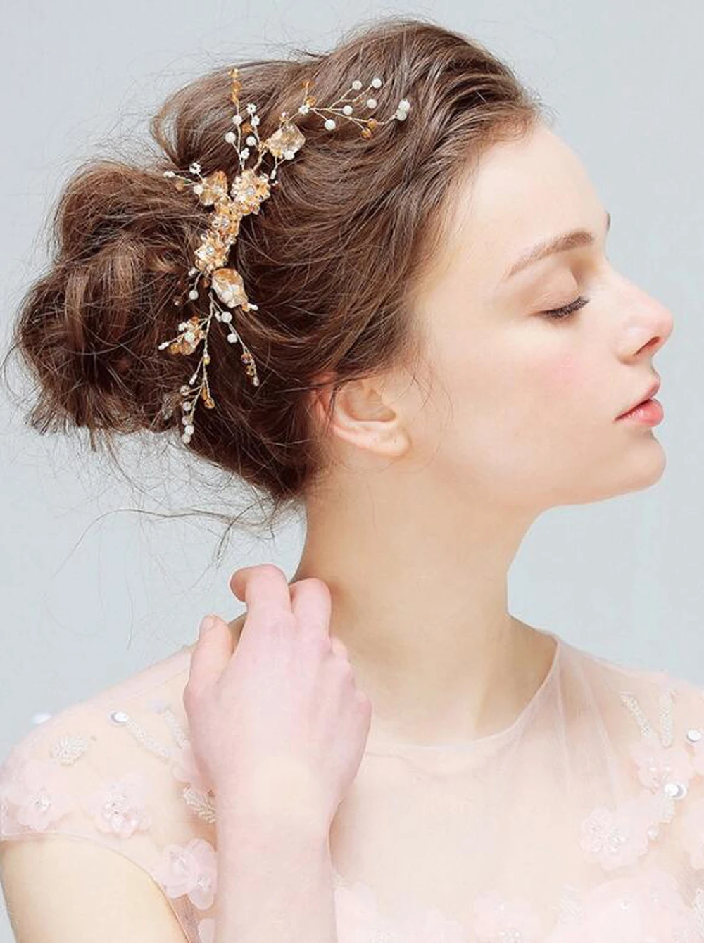 Материал: искусственный жемчуг, медная проволока, цветок, лист, кристалл. Стразы