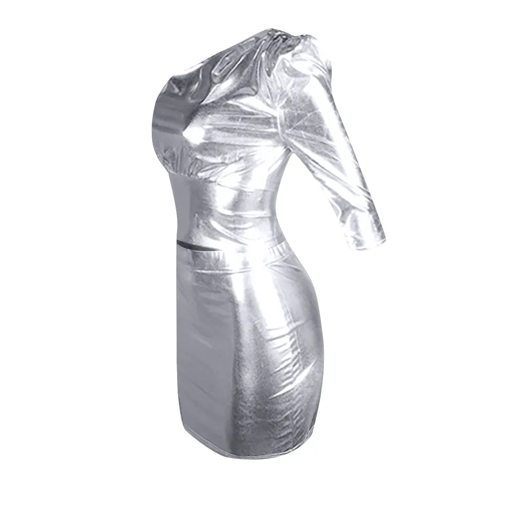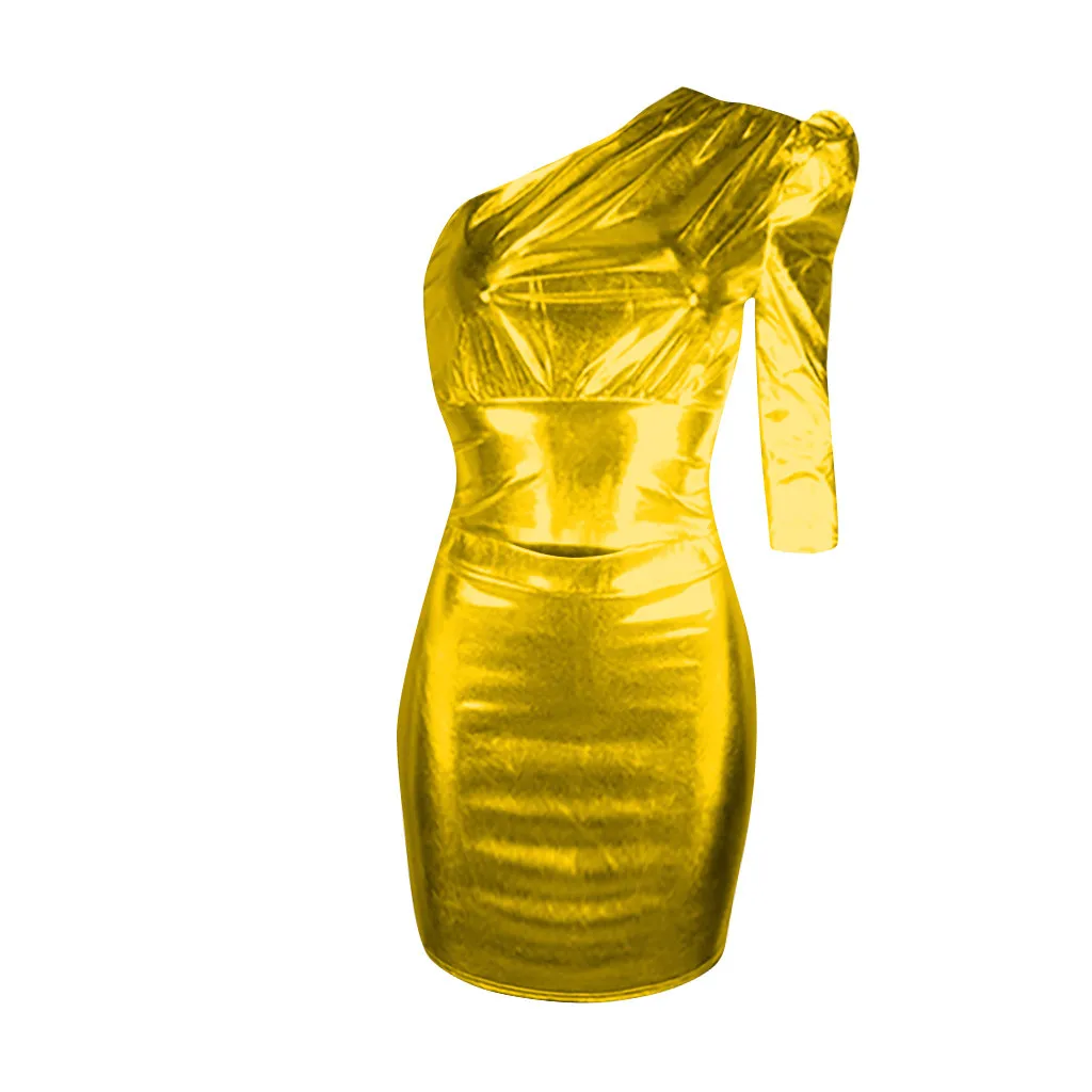 Вечерние Клубные сексуальные платья, женские модные однотонные блестящие тонкие юбки с рукавом три четверти, костюм из 2 предметов, 2020