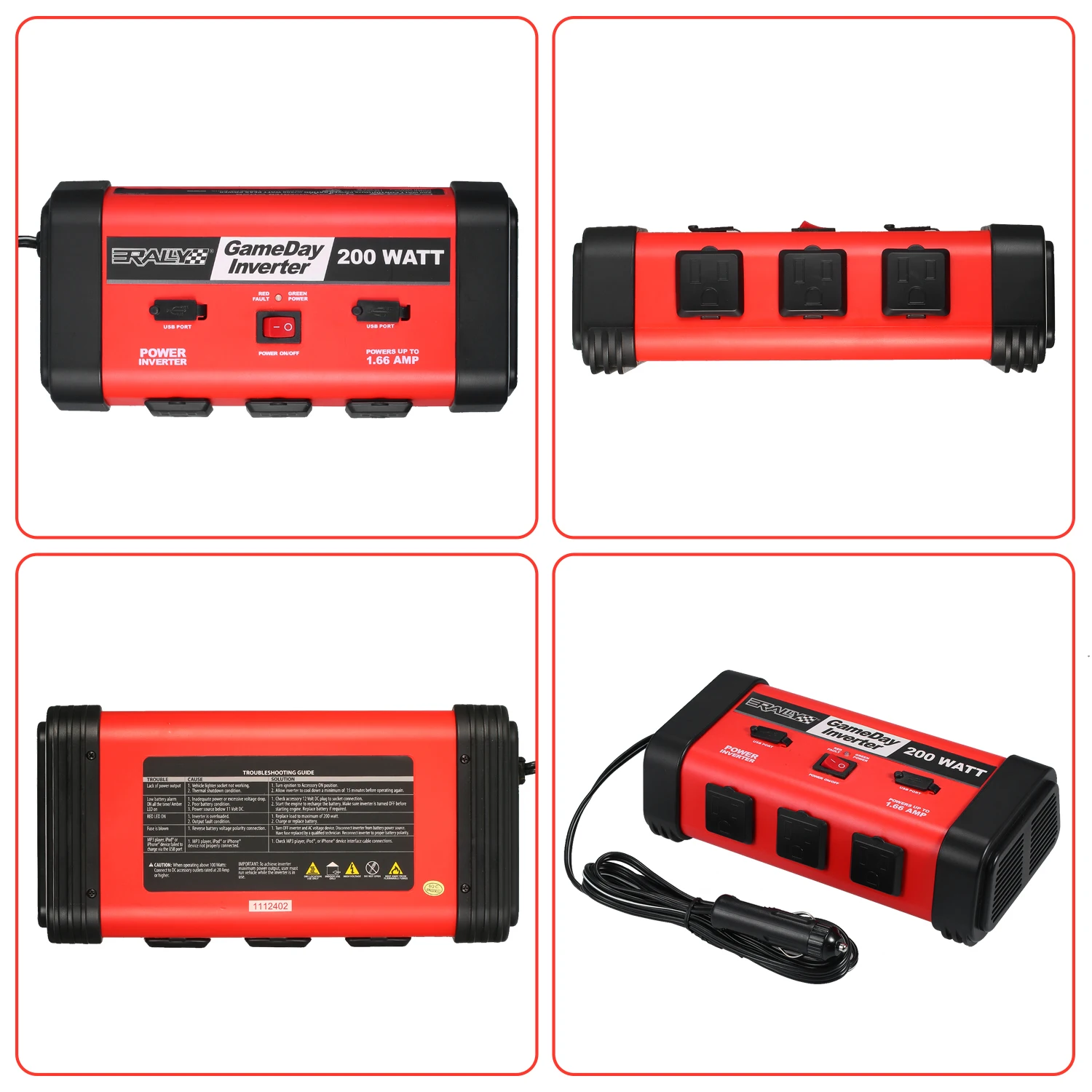 200 Вт инвертор высокой мощности --- поставляется с профессиональной прикуривателем. Обеспечивает 200 ватт непрерывной мощности, преобразует 12 В постоянного тока батареи в стандартный 110 В переменного тока.