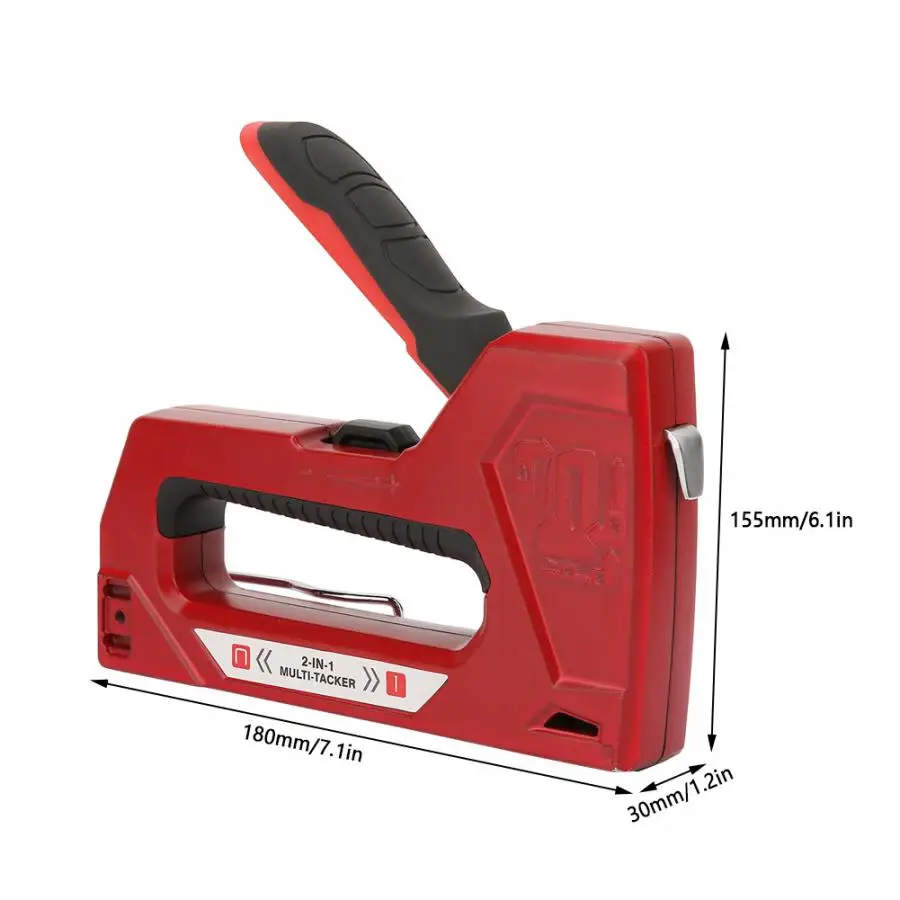Профессиональный сверхмощный штапельный пистолет с металлической конструкцией, прочный для длительного использования. Корпус из алюминиевого сплава, износостойкий и ударопрочный. С крючком для ремня, удобно прикрепить штапельный пистолет к поясу. Окно для визуального наблюдения. Пистолет для ногтей имеет кольцо для блокировки ручки, чтобы избежать неправильной работы. Подходит для фиксации фоторамки, герметизации деревянных коробок, фиксации рекламной доски, переплета книг и т. д.