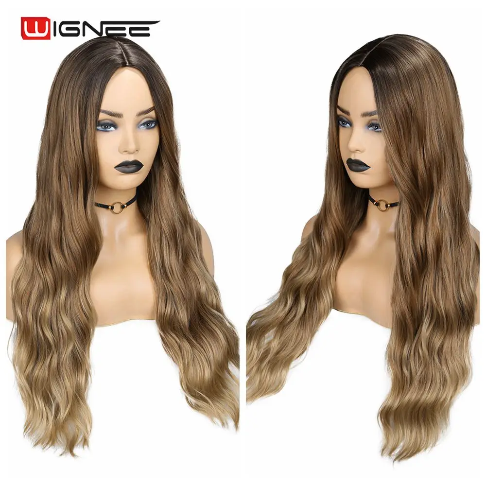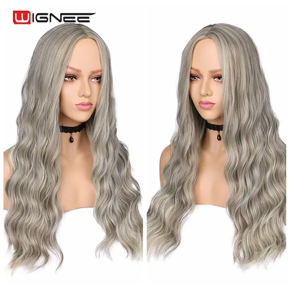 Длинный волнистый термостойкий синтетический парик Wignee Ombre для женщин, черный/белый, коричневый, светлый/серый, американский косплей/парики из натуральных волос для вечеринки