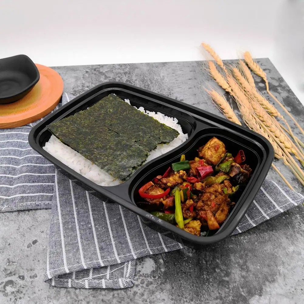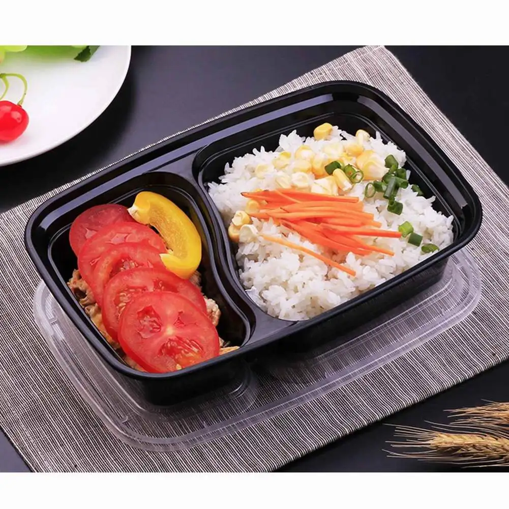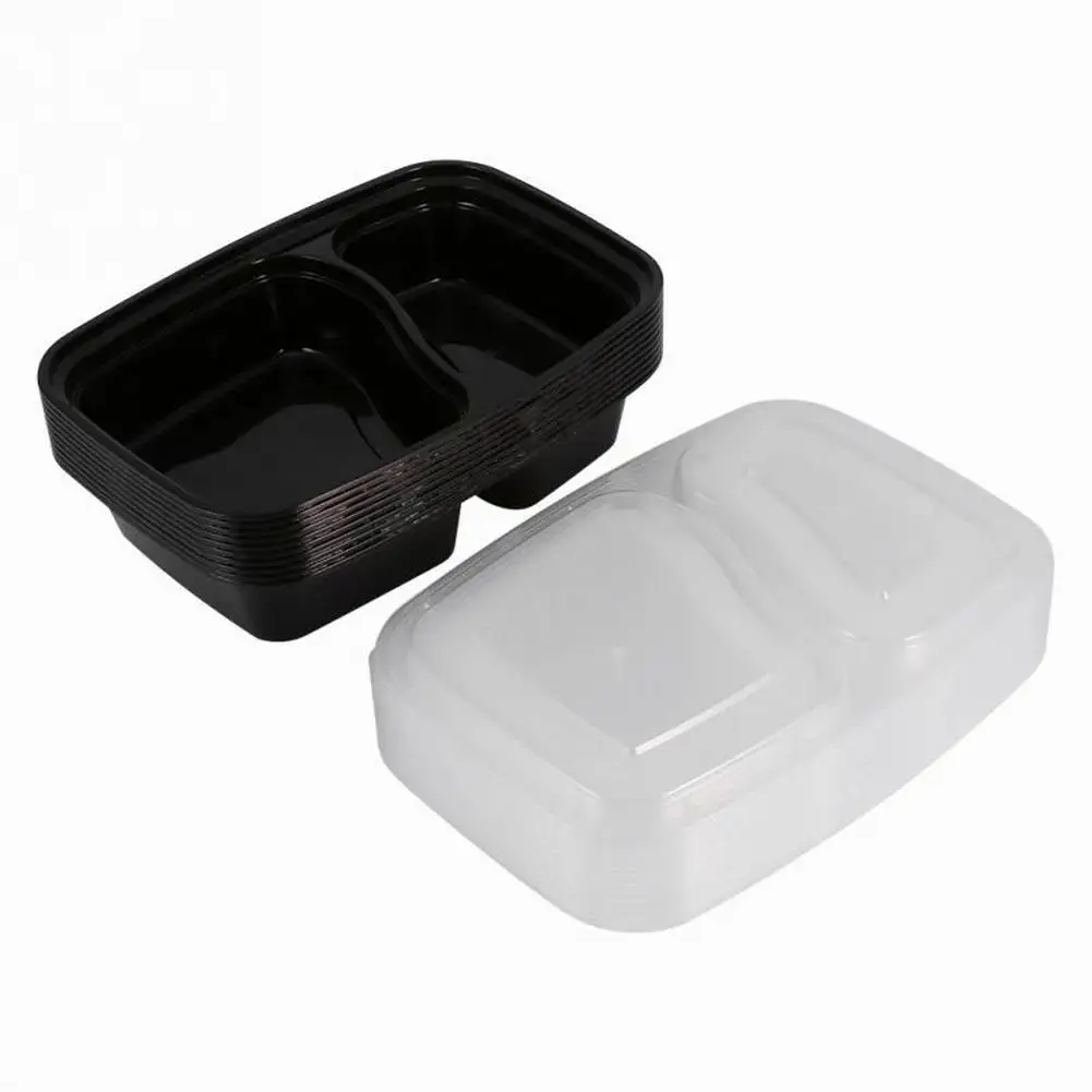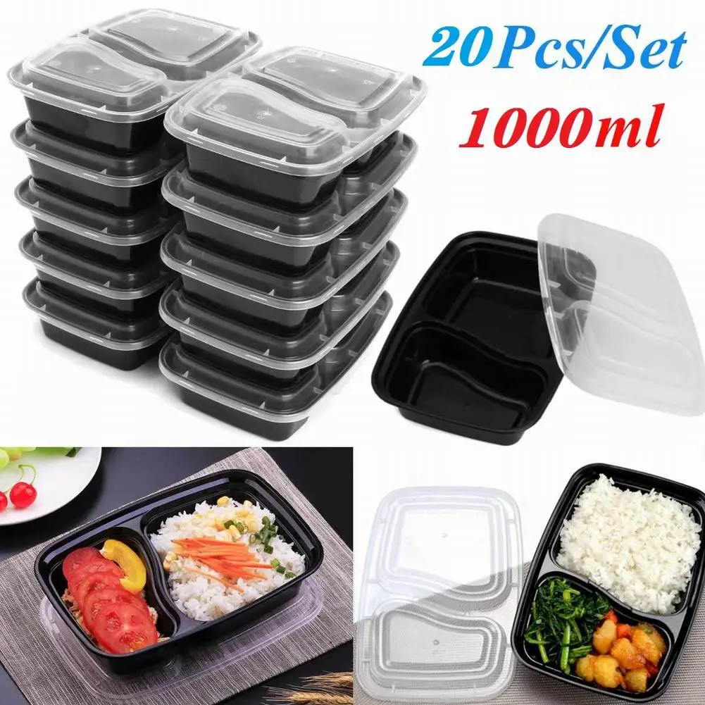 20 шт одноразовый пластиковый контейнер Bento для хранения еды, контейнер для ланча, 2 отсека, микроволновые контейнеры, домашний ланчбокс для кухни