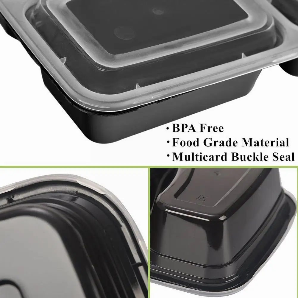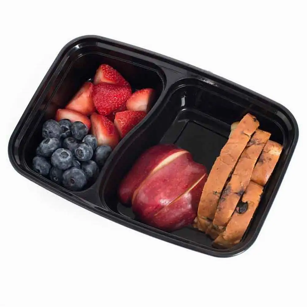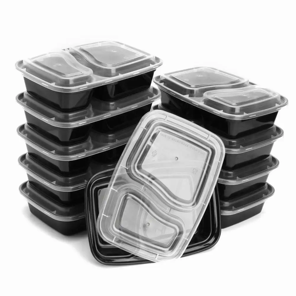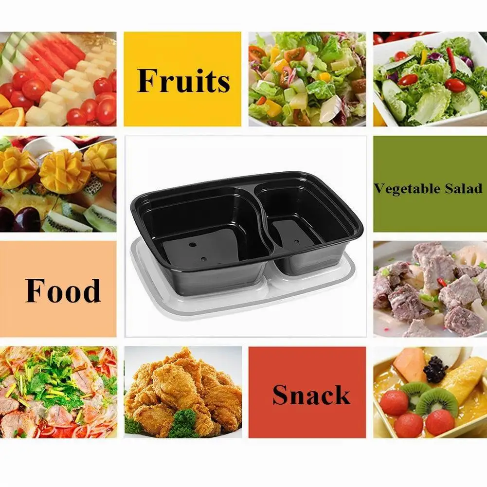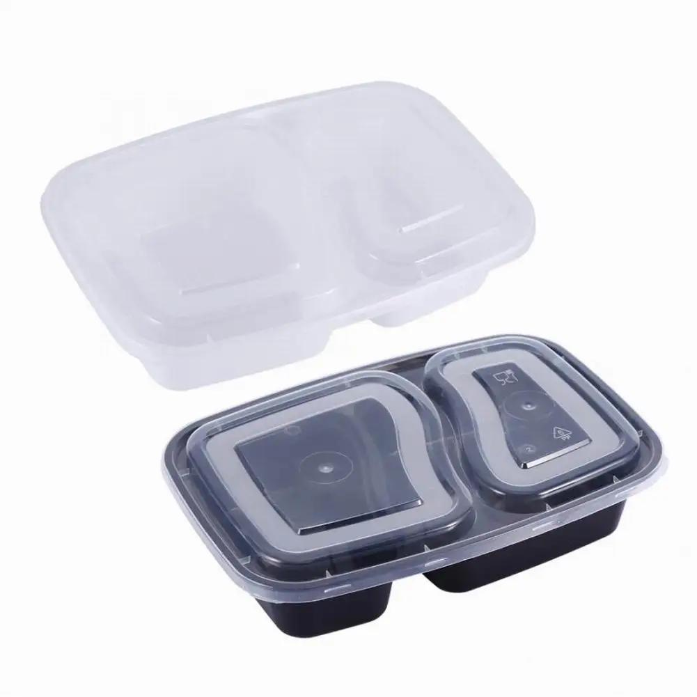 20 шт одноразовый пластиковый контейнер Bento для хранения еды, контейнер для ланча, 2 отсека, микроволновые контейнеры, домашний ланчбокс для кухни