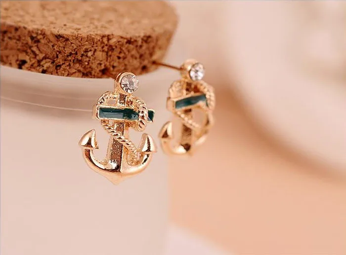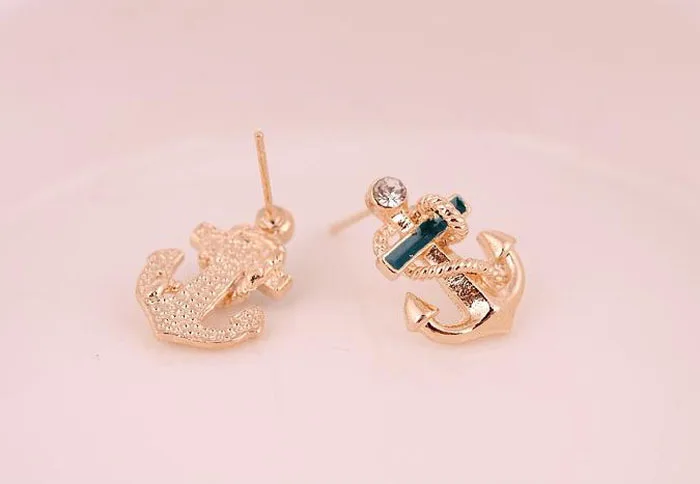 1 пара, женские модные хрустальные стразы, серьги-гвоздики в виде якоря, подарок(Без розничной упаковки)