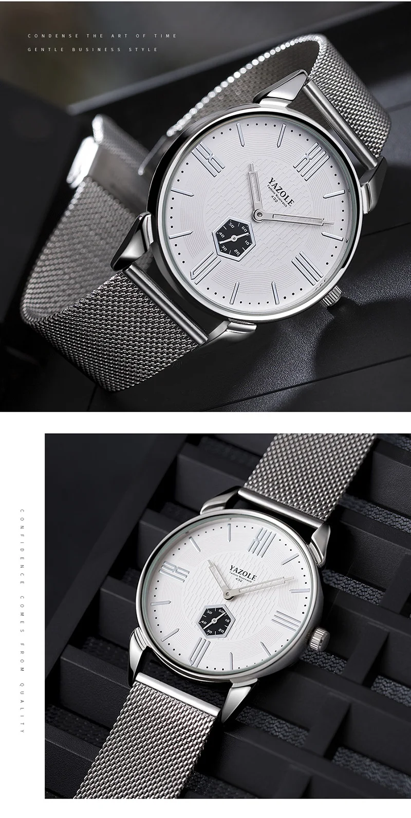 YAZOLE магнит Нержавеющая сталь сетка ремешок для мужчин часы бренд Простой кварцевые наручные часы для мужчин мужские часы reloj hombre zegarek meski