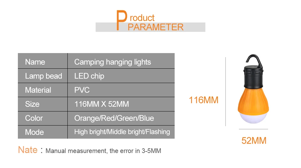 Особенности: Ручной или подвесной, вы можете взять его в любом месте. Материал: пластик Светильник, излучающий диод: 3 * Светодиодный Вес: 55 граммов Питание: 3 батарейки AAA (не входят в комплект) Применение продукта: аварийное освещение, отдых на свежем воздухе в ночное время, кемпинг, туризм, охота, альпинизм, рыбалка, чтение подходят. Посылка включает в себя: 1 * ручной фонарь