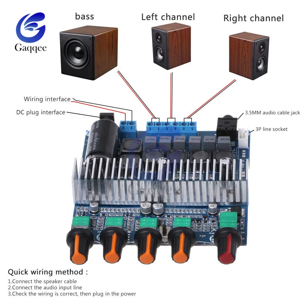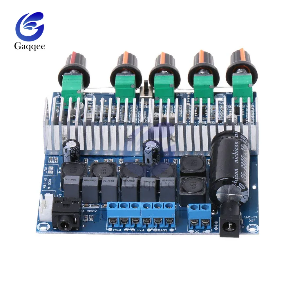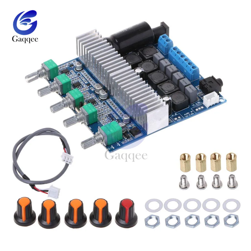 Особенности: Доступ к блоку питания можно получить от розетки постоянного тока или клеммного блока. Аудио может быть от 3,5 мм гнездо, или 3psocket интерфейс аудиовхода, как, например, компьютер, MP3 плеер и т. д. Потенциометр громкости басов, который может независимо регулировать громкость басов на выходе. Левые и правые канал Объем потенциометра, можно регулировать левые и правые выходной канал объем в одно и то же время. Тройной регулируемый потенциометр, регулируемый левый и правый канал с тройным коэффициентом усиления. Переключатель/потенциометр общего объема с переключателем, который может выключить усилитель/также регулировать громкость басов, левый и правый каналы. Общий потенциометр с переключателем по умолчанию Параметры: Чип: TPA3116D2 Защита микросхем: перенапряжение, понижение напряжения, перегрев, обнаружение постоянного тока и короткое замыкание Рабочее напряжение: DC12-24V (ток 3-4A или больше обычного, Поэтому советуем 19-24V / 4-5A выше) Чувствительность аудиовхода: 500-800 мВ Диапазон частотной характеристики: 20 Гц-20 кГц Динамик сопротивление: Левый и правый канал колонки: 3,5-8Ohm Сопротивление басового динамика: 2-8 Ом Количество каналов: 3 канала (левый, правый, сабвуфер) Максимальная выходная мощность: 50 Вт (левый канал) + 50 Вт (правый канал) + 100 Вт (сабвуфер) Посылка включает в себя: Плата звукового усилителя 1 * TPA3116 2,1, DC 12-24 В, цифровой Hi-Fi модуль усилителя для сабвуфера, супербасовая Колонка 50 Вт + 50 Вт + 100 Вт