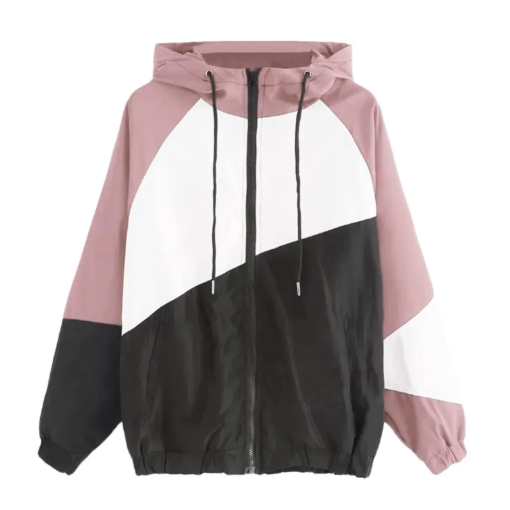 Женское лоскутное тонкое пальто с длинным рукавом, повседневная спортивная куртка на молнии с капюшоном