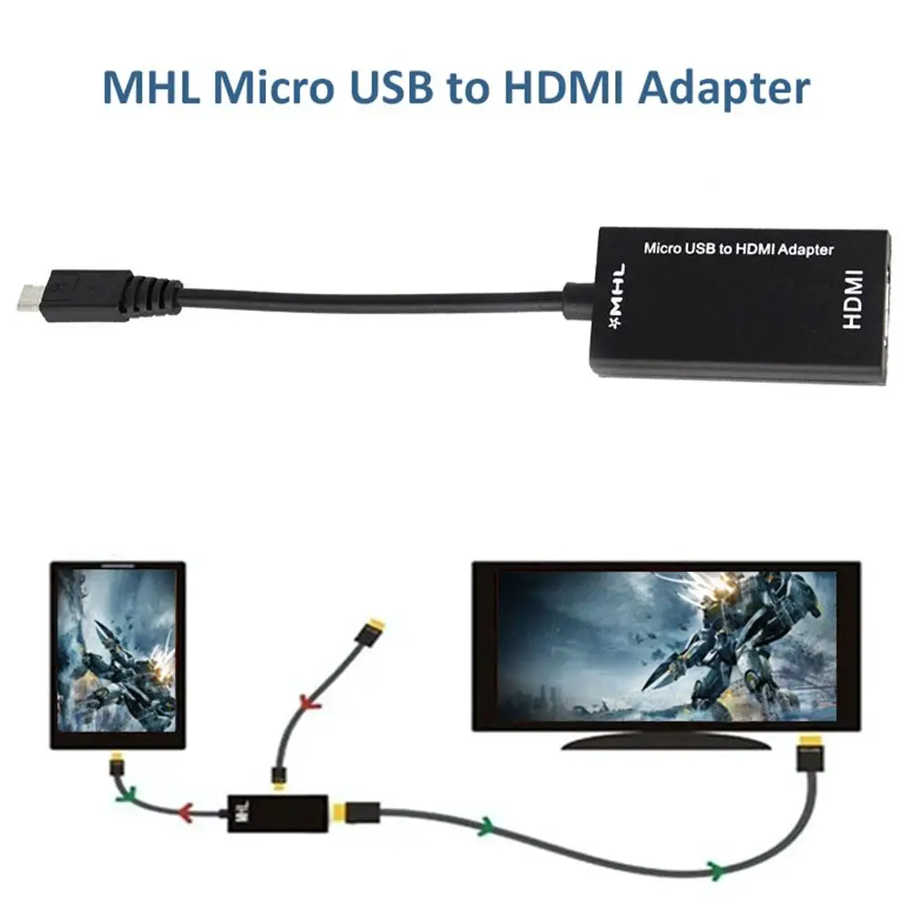 Он использует создан разъемы и имеет один кабель с 5-ти контактный интерфейс, поддерживает 1080 p видео высокой четкости и цифрового аудио и одновременно обеспечивает питание к мобильному устройству.1 кабель Micro USB 2,0 (зарядный кабель для мобильного телефона)