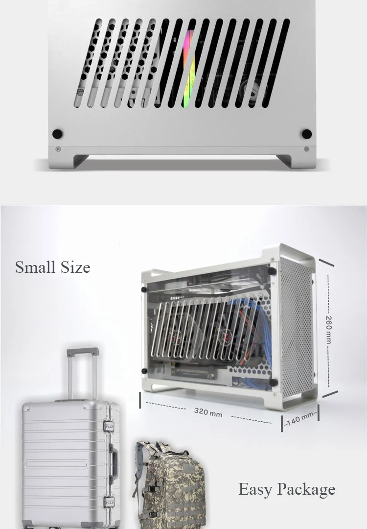 Тип Чехол для компьютера ITX Материал Алюминий Совместимая материнская плата ITX Motherbaord Ограниченная длина видеоадаптера 300 ммВысота кулера процессора ограничена 60Мм Жесткий диск 2,5 дюймов * 2Интерфейс панели USB3.0 * 2 + Кнопка питания * 1Вентилятор охлаждения120 мм(Пожалуйста, подтвердите цвет с продавцом)Чехол с размерами320*140*260 мм