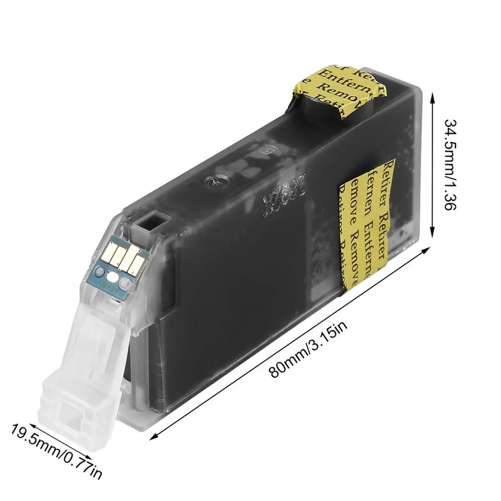 Размер: 80*34,5*19,5 мм (PGI-520BK), 78*34,8*12,2 мм (CLI-521BK, CLI-521C, CLI-521M, CLI-521Y)