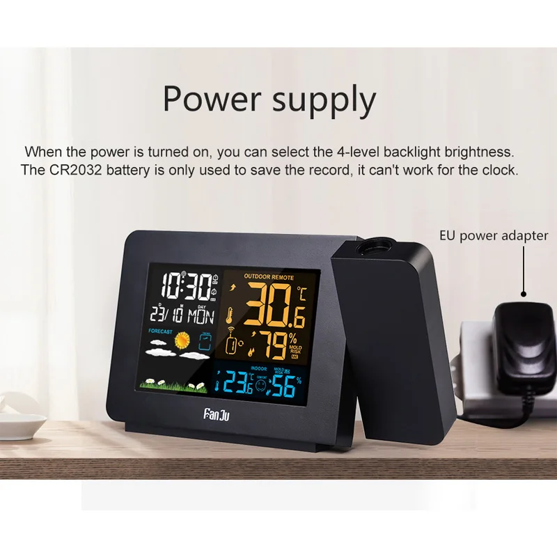 Проекционный будильник FanJu FJ3531 с проекцией температуры и времени/USB зарядное устройство/температура и влажность в помещении