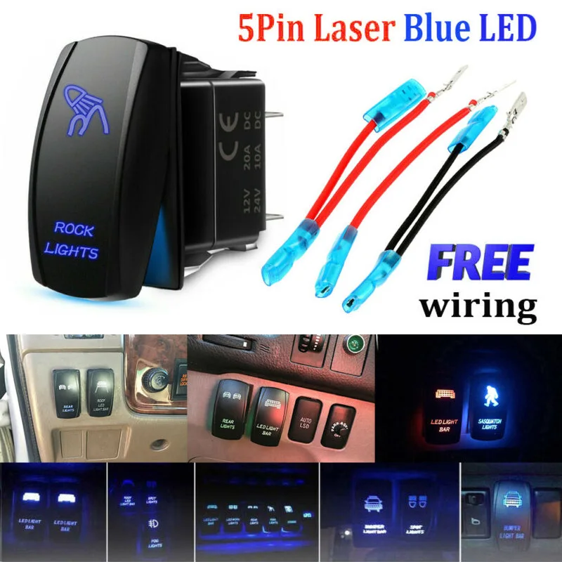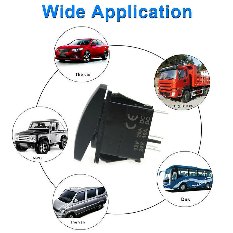 * Дизайн Стиль: черная твердая поверхность рокер, с переключением между дальним и полюса двойной бросок ВКЛ-ВЫКЛ переключатель, лазерной гравировкой с подсветкой с двумя светодиодный свет, все символы лазерной гравировкой непосредственно на переключатель.
