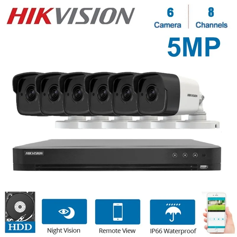 1 * DS-7208HUHI-K1/E 8 каналов DVR (Который может поддерживать Макс 8 шт. 5 Мп камер) 6*5 Мп Hikvision DS-2CE16H0T-ITF камера Адаптер питания 6*12 В 1 * HDD под заказ