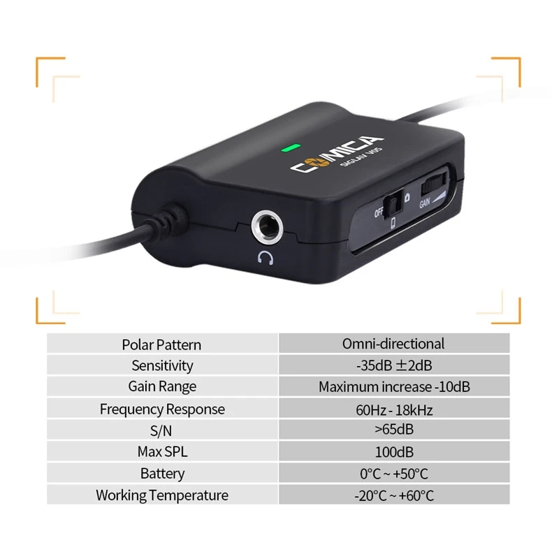 CVM-SIG.LAV V05 является гибким одиночным микрофоном lavalier с несколькими функциями, как плавная регулировка усиления, совместимость со смартфоном и камерой, мониторинг в реальном времени, кроме того, он использует звуковой микрофонный сбор поставляется с суперзащитой и профессиональной защитой от шума.