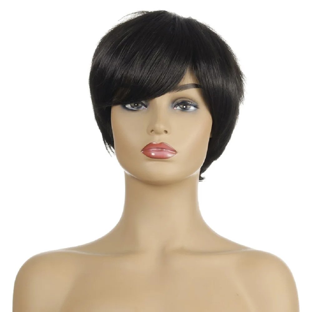 Короткие прямые синтетические парики для черных женщин натуральные черные парики с боковым взрывом Средний размер розовый чистая синтетические парики 10 дюймов