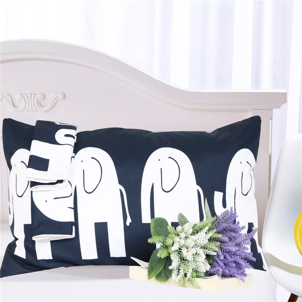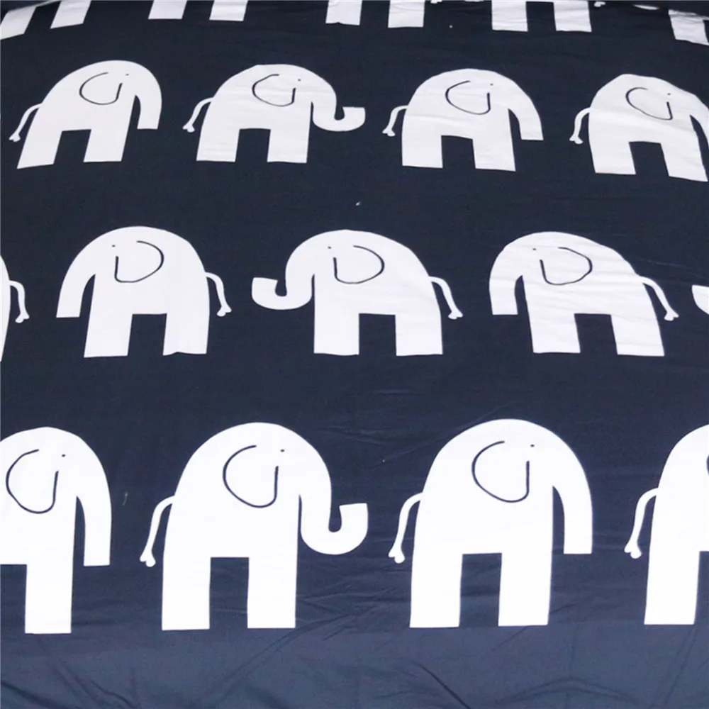 Черное хлопковое сатиновое детское пуховое одеяло с 3D принтом слонов, Комплект постельного белья, наволочка, чехол для кровати
