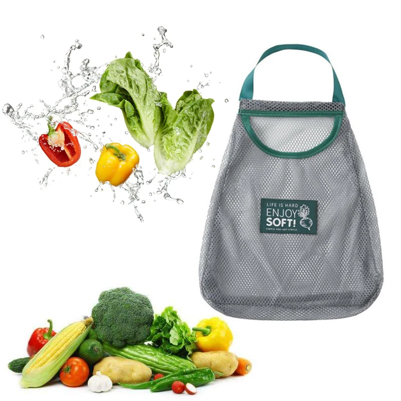 Многоразовый сетчатый мешок для хранения овощей, прочный и дышащий.