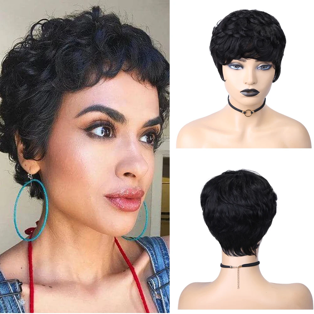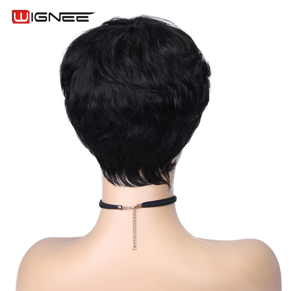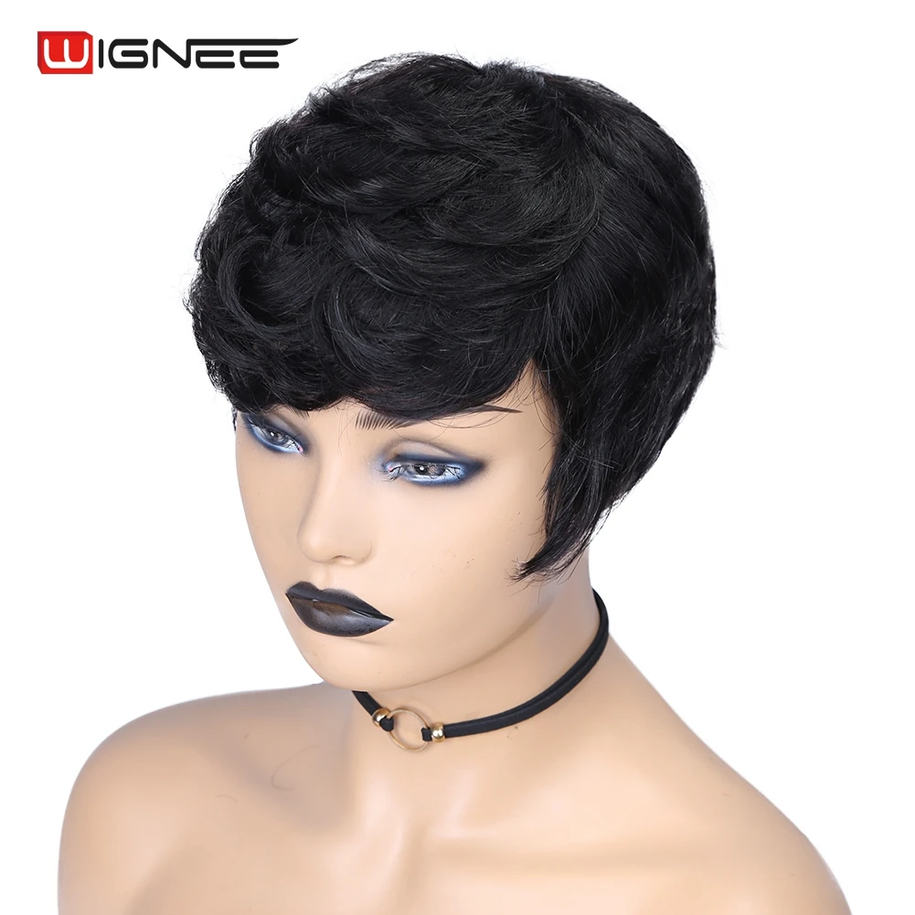 Wignee короткие парики из человеческих волос с бесплатной челкой для черных женщин локон Afro Jerry бразильские Remy волосы Glueless Pixie Cut человеческие парики