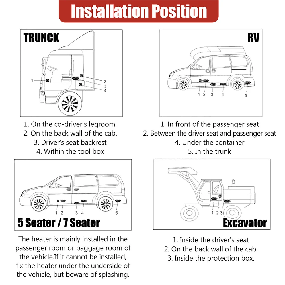 Особенности: 1. Он может обеспечить источник тепла для автомобиля, улучшить температуру внутри автомобиля, и подогрев охлаждающей жидкости двигателя, чтобы избежать износа двигателя при низкой температуре. Способствует размораживанию салона автомобиля, запуску автомобиля, размораживанию стекла автомобиля в тумане. 2. Низкий уровень шума, снижение уровня шума и минимальный уровень шума. Пульт дистанционного управления может дистанционно управлять Дизельный подогреватель воздуха для предварительного нагрева и регулировки. 3. Низкое топливо и низкое энергопотребление, подходит для долгосрочного использования. ЖК-дисплей может четко отображать состояние работы машины, может быть установлен для запуска и выключения, может регулировать объем масла, скорость ветра и температуру. Режим плато и ручной режим насоса (пожалуйста, используйте с осторожностью). 4. Компактный и простой в установке, компактный дизайн облегчает использование в различных небольших помещениях и может быть удален на новые транспортные средства после замены транспортного средства. 5. Подходит для всех типов дизельных механических Транспортные средства, такие как автомобили, грузовики, автобусы, моторные дома, грузовики, кемперы, караваны, строительные транспортные средства, лодки и т. д., чтобы насладиться теплом в холодную зиму. Технические характеристики: Материал: металл и АБС Цвет: как показано на картинке Размеры: около 39*15*18 см/15,35*5,91 * 7.09in Напряжение: 12 В/24 В (опционально) Мощность: 5000W Топливо: дизельное топливо Расход топлива (л/ч): 0,18-0,48 Рабочая температура нагревателя: -40 ℃-50 ℃ Рабочая температура масляного насоса: -40 ℃-40 ℃ Упаковочный лист: 1 * нагреватель воздуха на дизельном топливе 1 * ЖК-дисплей Дисплей 1 * Фильтр 1 * глушитель 1*10 л топливный бак 1 * Дистанционное Управление 1 * ремешок (комплект) 1 * впускная труба 1 * выхлопная труба 1 * выходной канал 1 * масляная трубка 1 * масляный насос 1 * Насадка 1 * Мощность шнур 1 * фиксированная пластина 1 * Монтажный комплект Примечание: Пожалуйста, выберите напряжение 12 В для аккумулятора автомобиля и 24 В для 2 автомобилей-батарей (обычно это грузовики и грузовики). Пожалуйста, подтвердите напряжение автомобильного аккумулятора и купите.