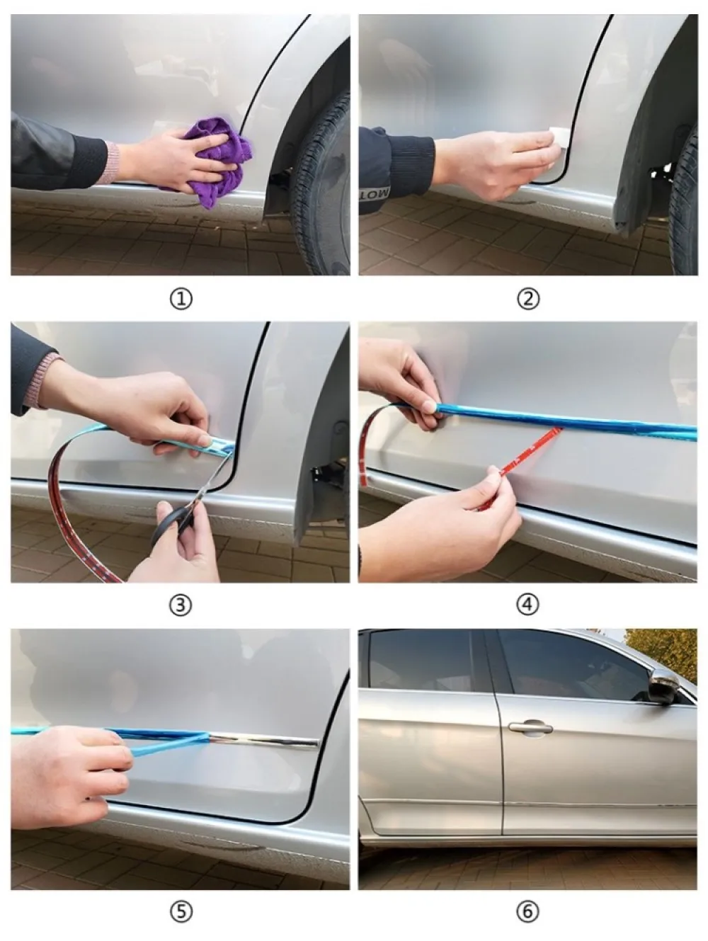 1. ①Протрите тело полотенцем 2. ② нанесите промоутер адгезии на место установки 3. ③ обрезная форма соответствует вставленной форме 4. ④ Оторвите Двусторонний Скотч, нажмите во время разрыва 5. ⑤Оторвать синюю защитную пленку 6. ⑥Installation завершена