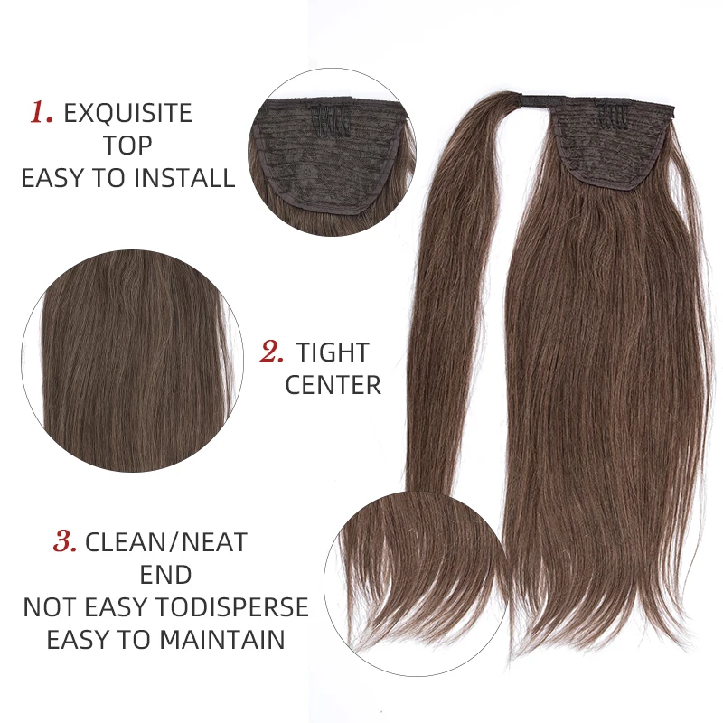 Текстура волос: 100% натуральные человеческие волосы Оригинальные человеческие волосы, мягкие, гладкие, прямые! Можно скручивать, выпрямлять, окрашивать в более темные цвета! Как носить? 1. Сделать высокий хвостик 2. Используйте 2-3 завязывания волос для дополнительной фиксации 3. Встроенный ремень-Пряжка и застежка-липучка 4. Подтолкните шпильку для фиксации под хвостом 5. Плотно оберните застежку-липучку вокруг хвоста 6. Поверните эту часть волос вокруг "конский хвост", основание. 7. Закрепите наконечник с помощью штифта.