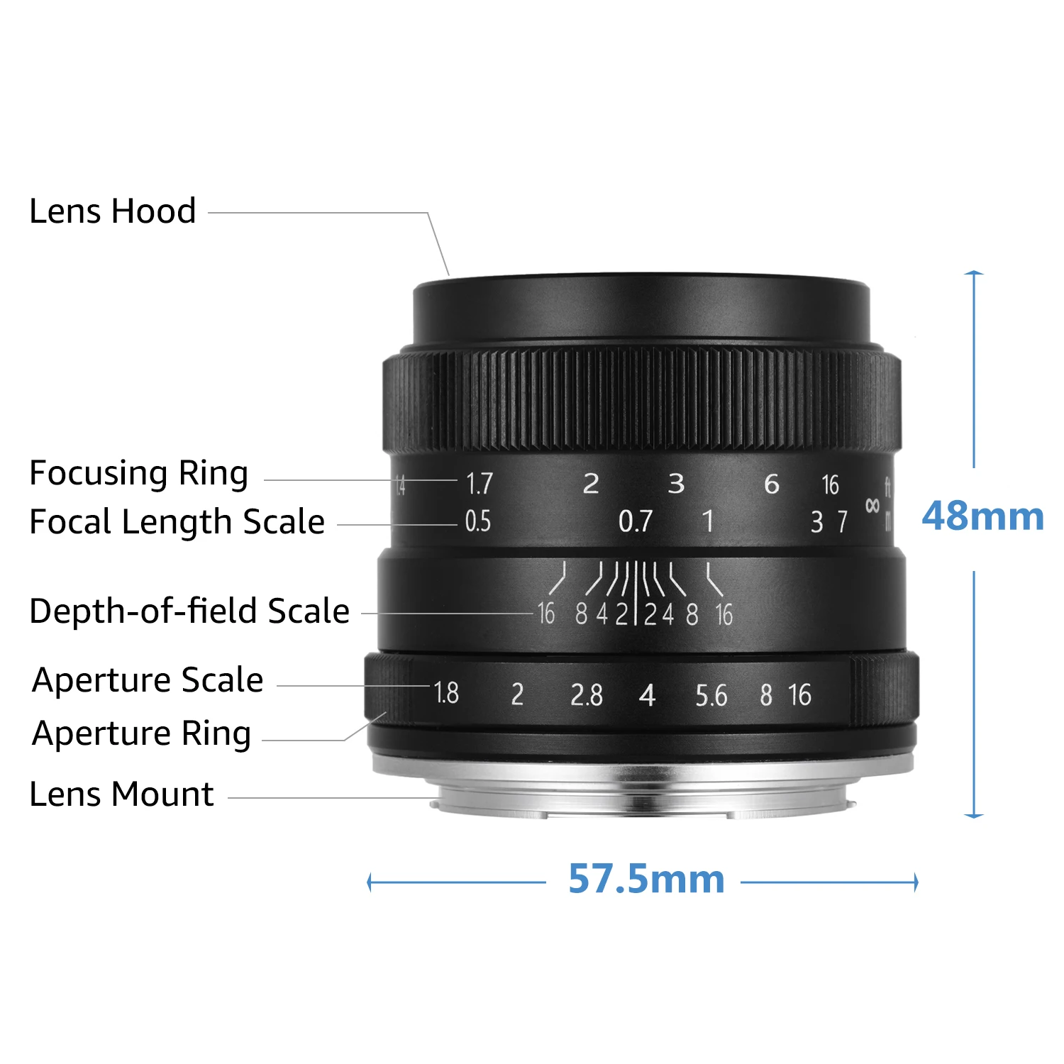 Стандартное фокусное расстояние 50 мм позволяет делать естественные и реальные фотографии, отличное качество изображения делает его идеальным для ежедневной съемки портретов, продуктов питания и ландшафта, эффективно отображает детали объекта съемки.