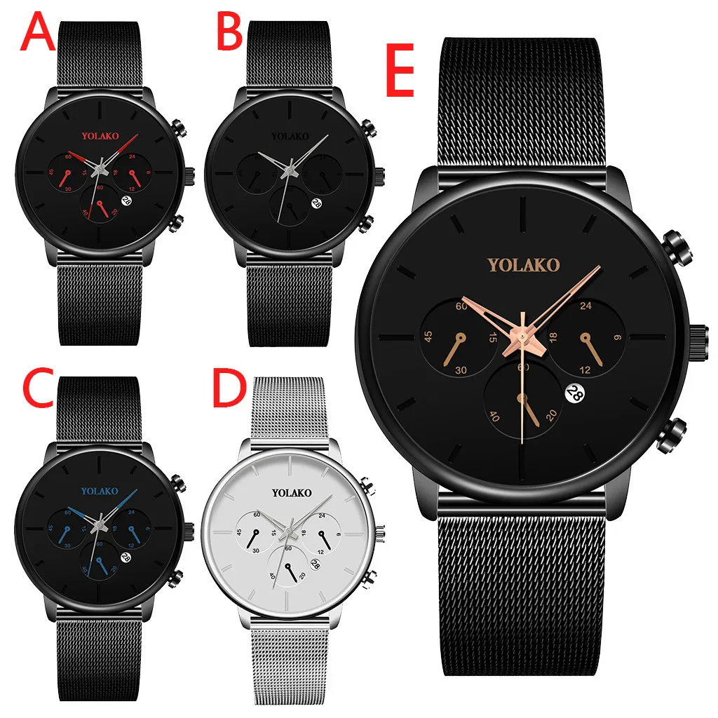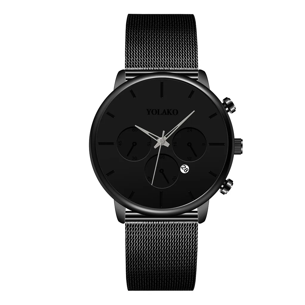 Часы YOLAKO, мужские Модные Повседневные кварцевые часы из нержавеющей стали с календарем, бизнес часы, аналоговые наручные часы, часы reloj hombre L58