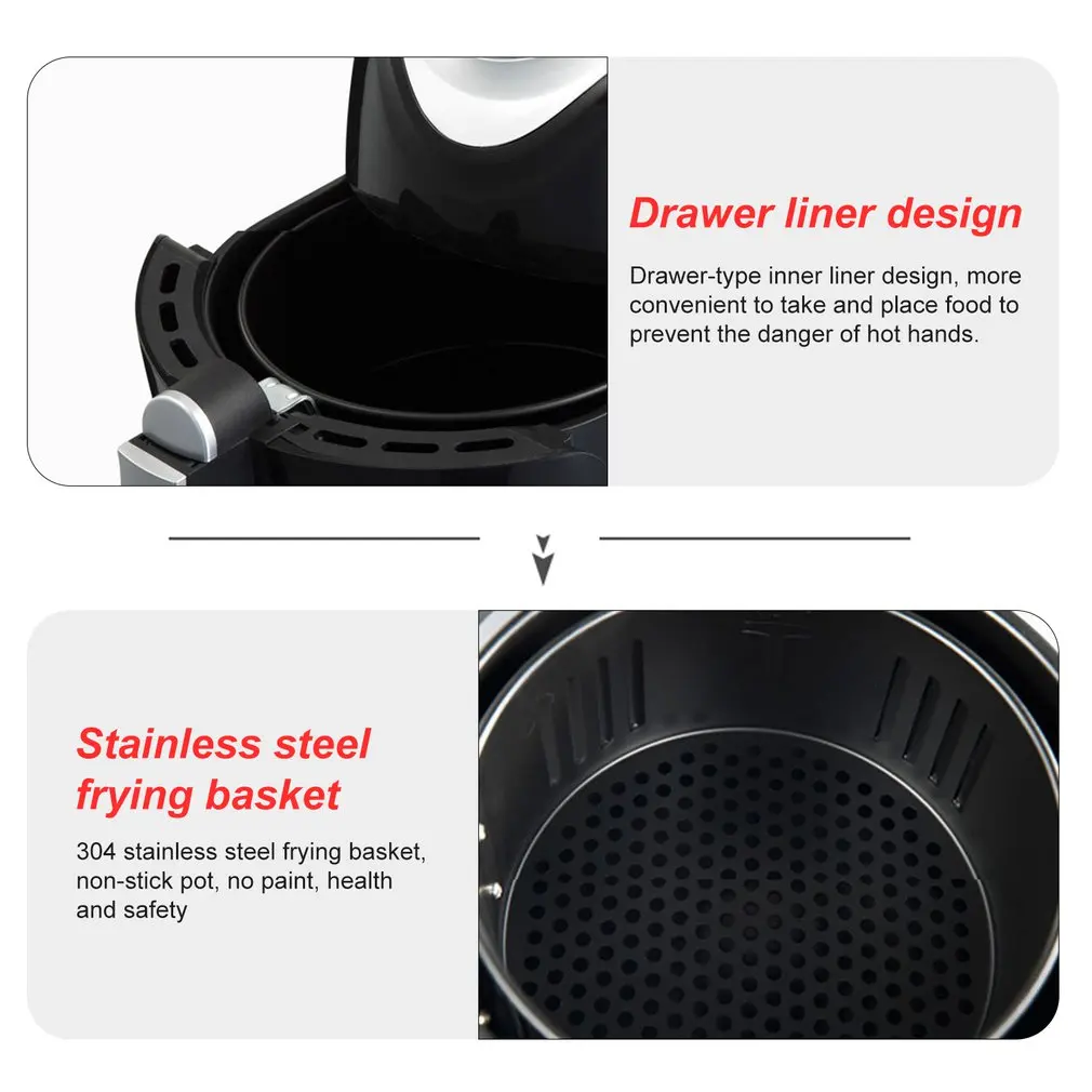 1. В фритюрнице с горячим воздухом еда приготовляется в потоке горячего воздуха, похожем на конвекционную печь, а не на жир или масло. Камера приготовления жаровня с горячим воздухом работает чрезвычайно эффективно и до рабочей температуры в кратчайшие сроки. В результате фритюрница потребляет мало энергии и, таким образом, является эффективным способом нежной подготовки пищи.