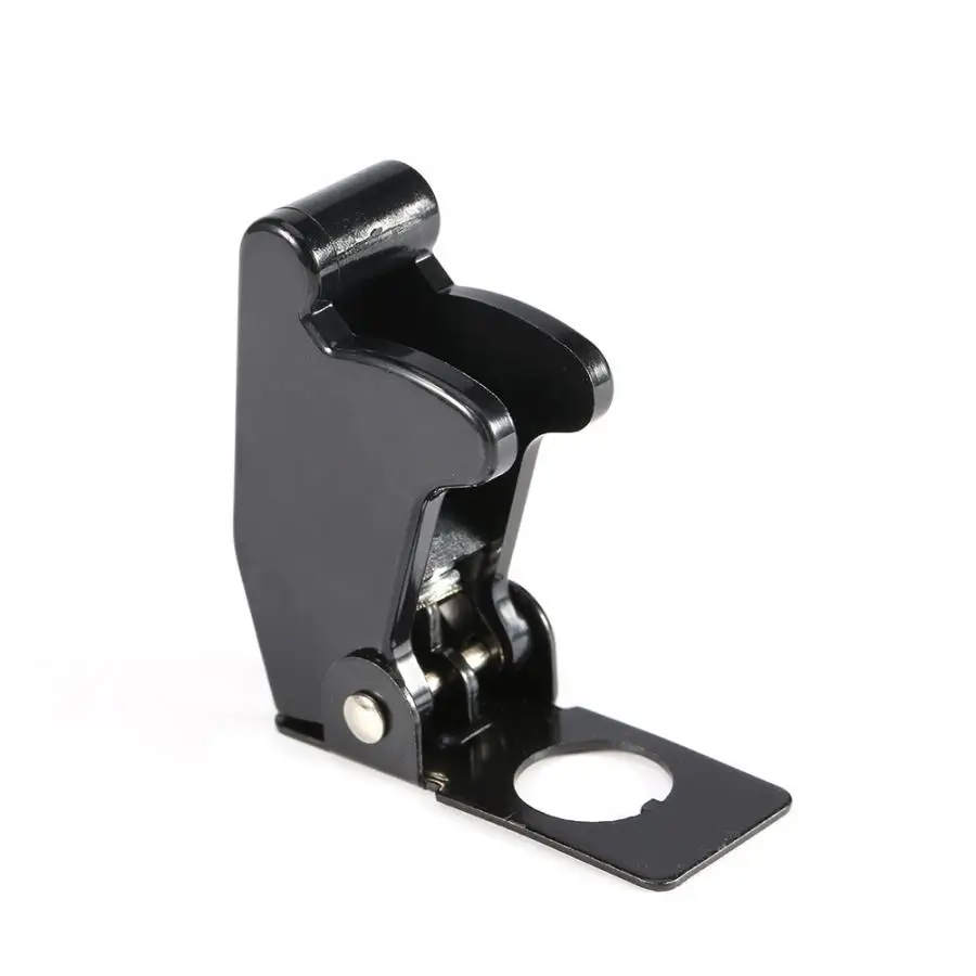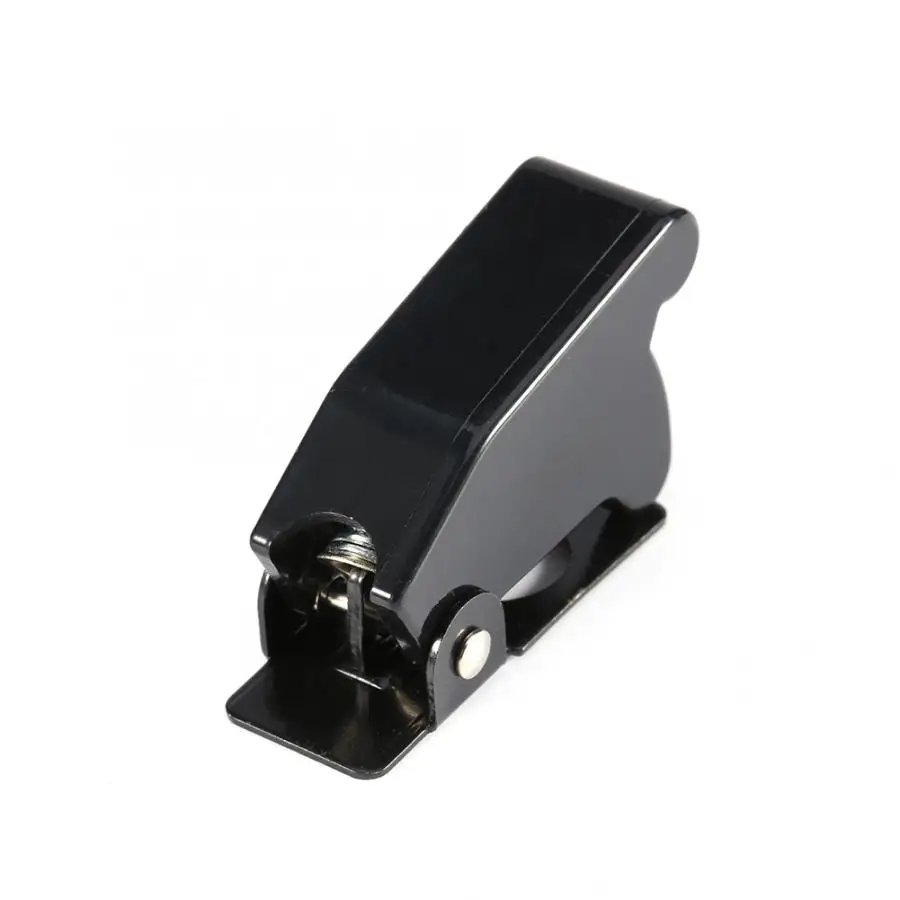 100% абсолютно новый и высококачественный. Основание (плоская полоса)-сталь. Другая часть-пластик. Он имеет металлический штифт для разворота. Пластиковый корпус с черной стальной защитной откидной крышкой для переключателя, крышка должна быть открыта после использования переключателя, когда крышка закрыта, тумблер вернется в исходное положение.