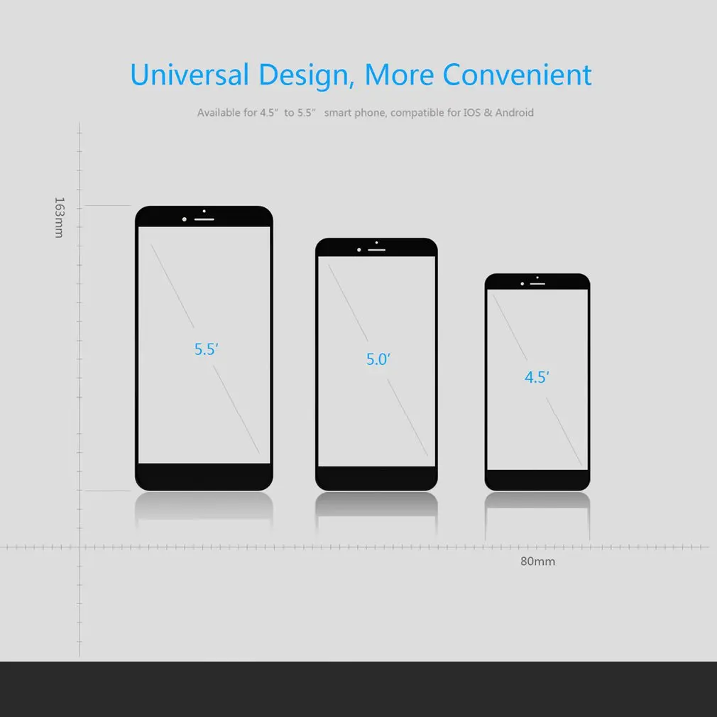 Широкая совместимость: подходит для смартфонов с экраном 4,5 дюйма-5,5 дюйма (ширина менее 82 мм, длина менее 165 мм). С другой стороны, подходит для IOS, для телефонов Android.